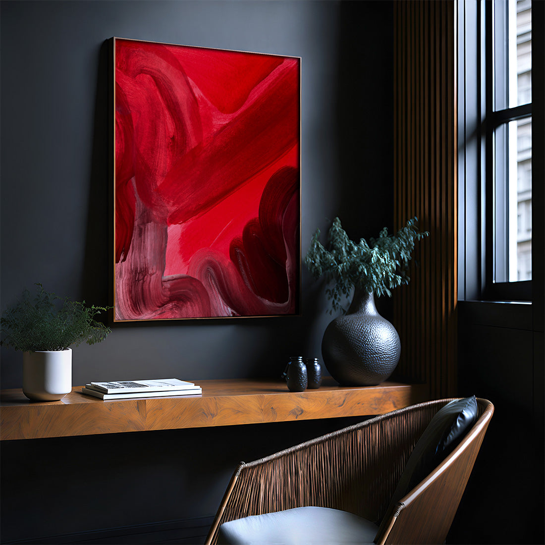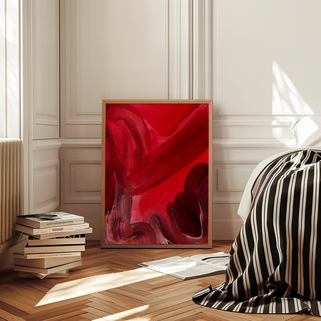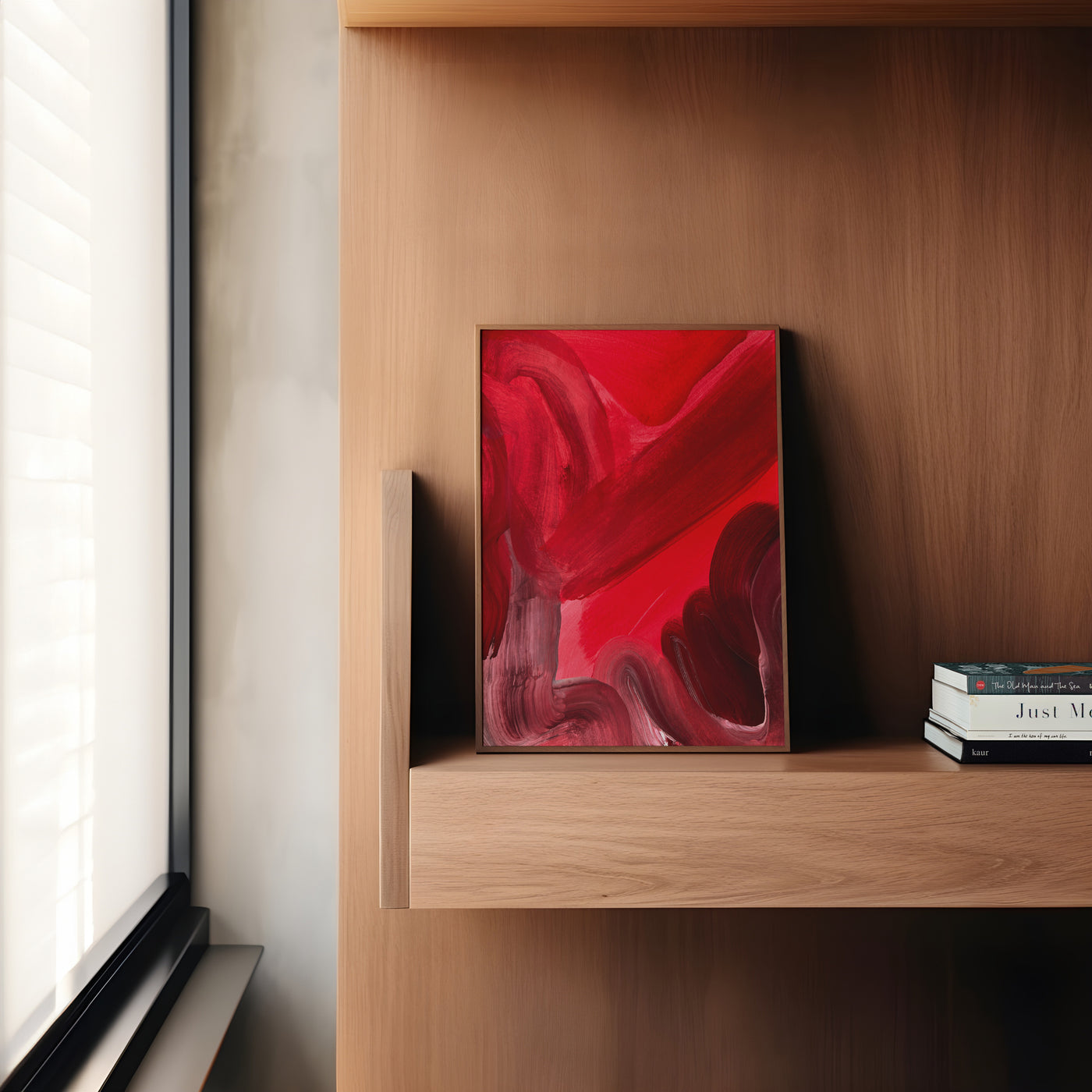 Modern Abstract Art Print in Red, No. 1 Brush Stroke Hand Drawn Acrylic Wall Art Print - Fine Art Paper / 8x10 / No Frame