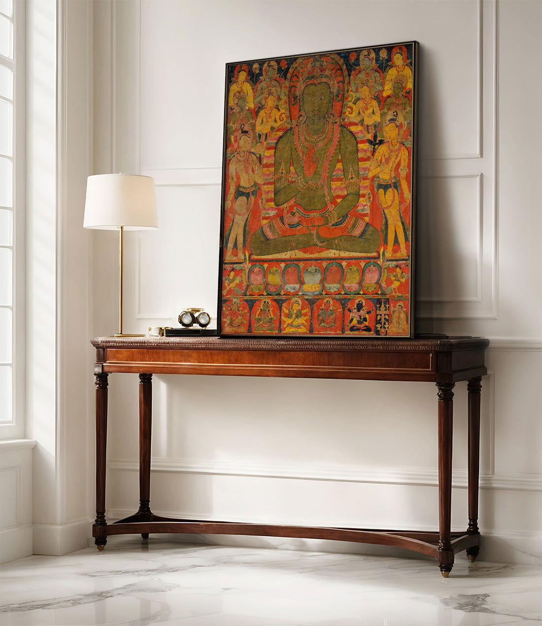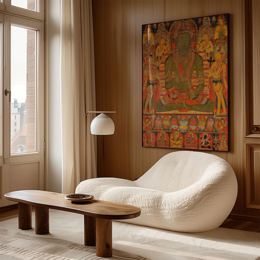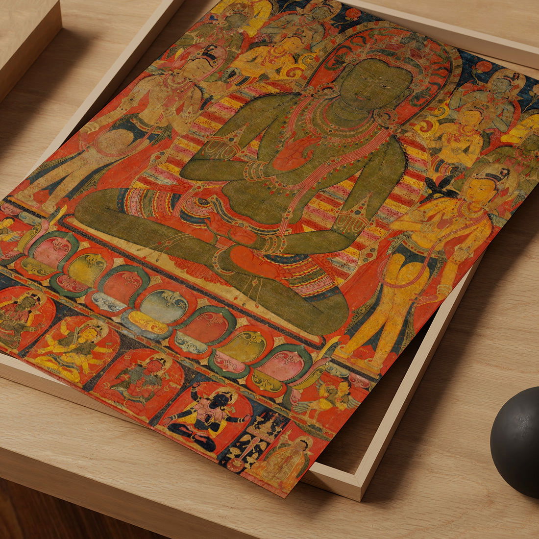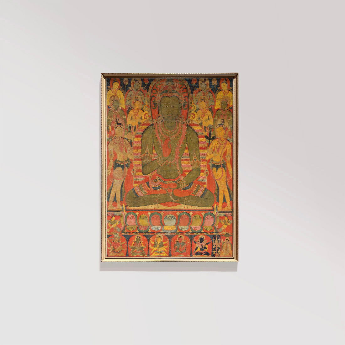 Buddha Amoghasiddhi with Eight Bodhisattvas Art Print. Asian Vintage Wall Art. - Fine Art Paper / 8x10 / No Frame