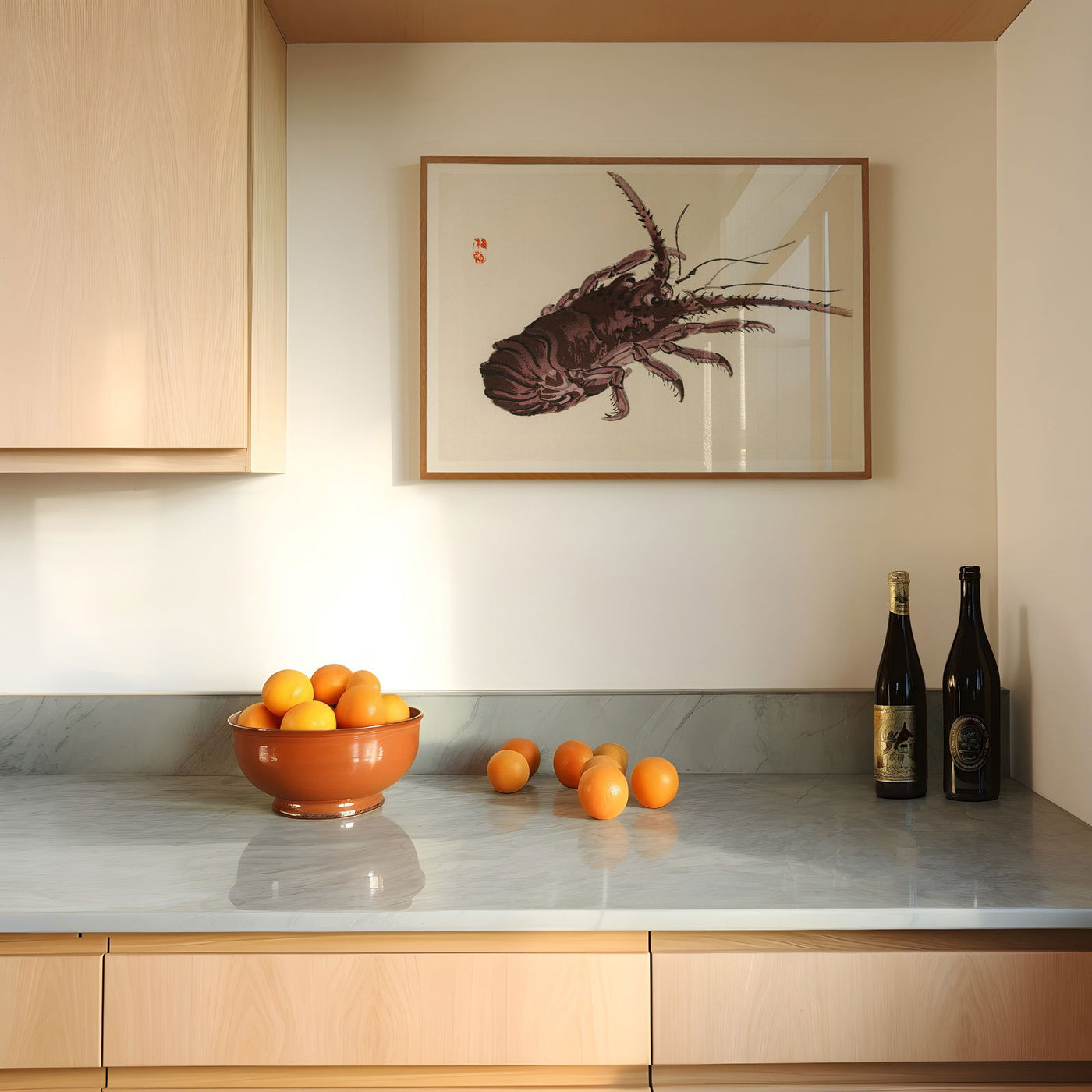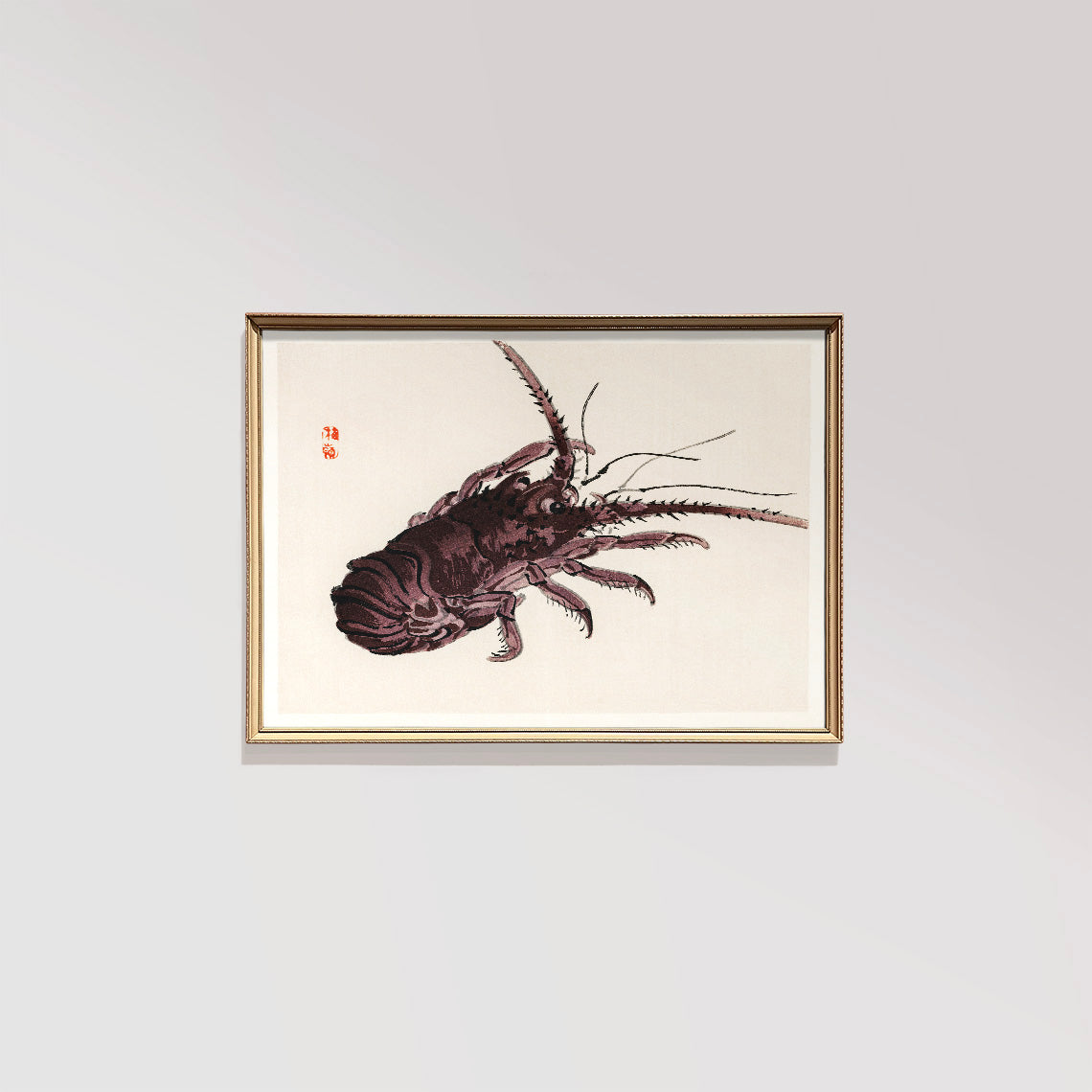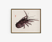 Japanese Vintage Art Print, Bairei Gakan Crayfish Asian Wall Art Print