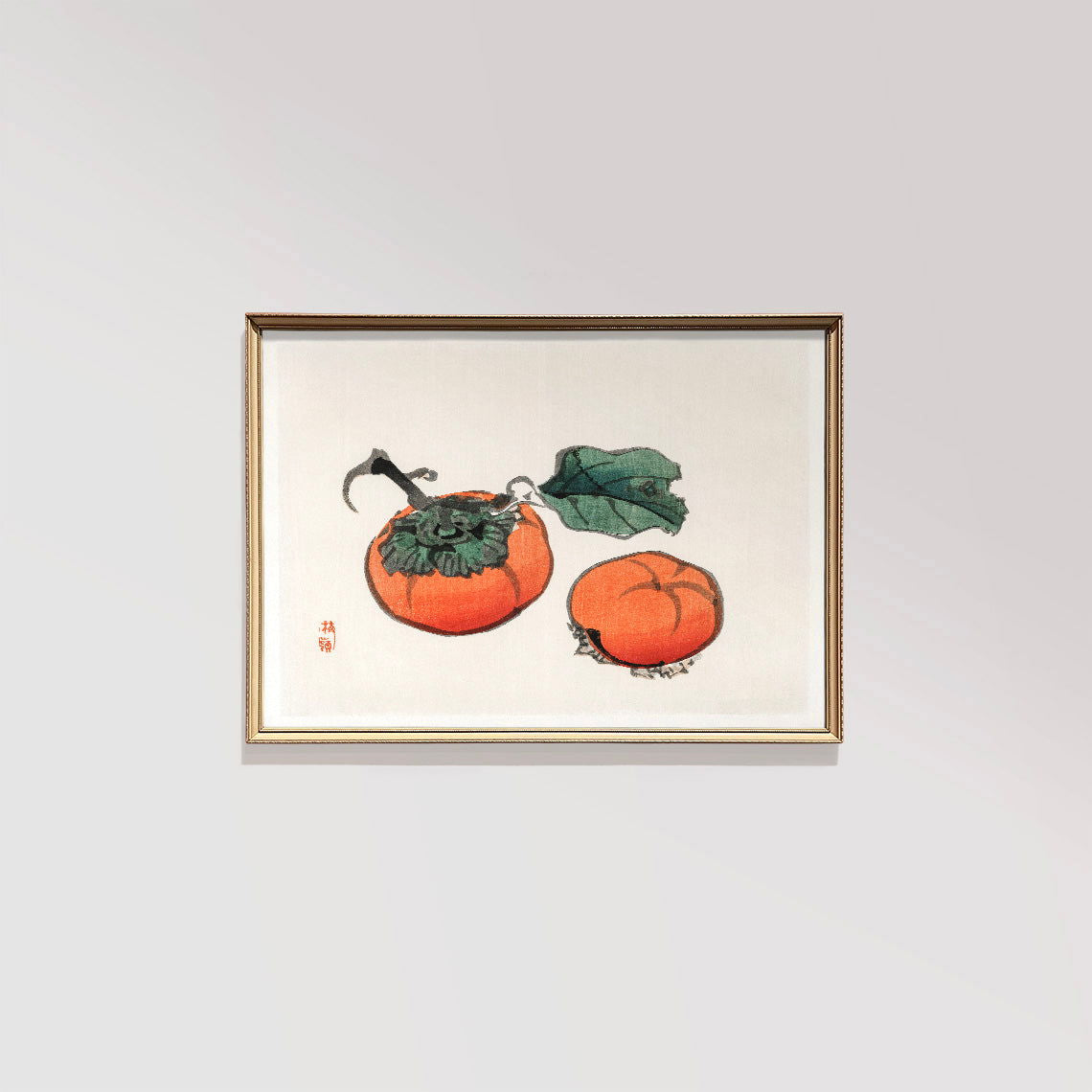 Japanese Vintage Art Print, Bairei Gakan Persimmons Asian Wall Art Print - Fine Art Paper / 8x10 / No Frame