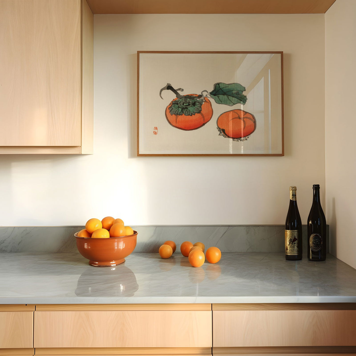 Japanese Vintage Art Print, Bairei Gakan Persimmons Asian Wall Art Print