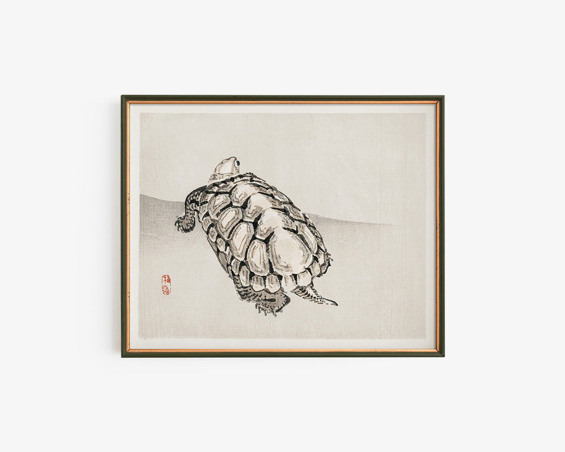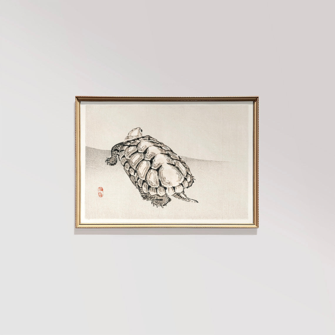 Japanese Vintage Art Print, Bairei Gakan Turtle Asian Wall Art Print