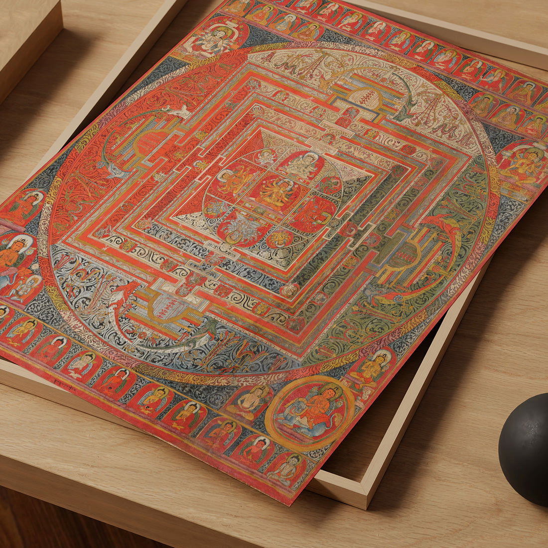 Manjuvajramandala With 43 Deities Buddhist Art Print, Tibet Asian Vintage Wall Art - Fine Art Paper / 8x10 / No Frame