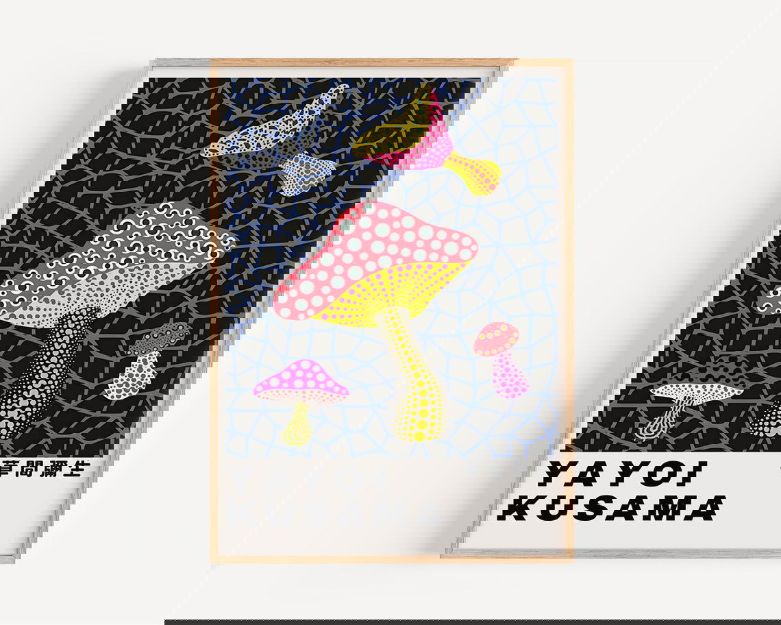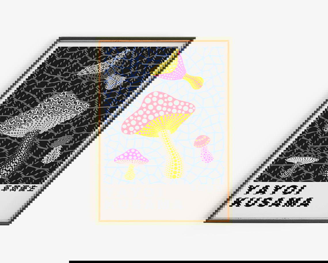 Mushroom Dots Exhibition Poster, Yayoi Kusama - Fine Art Paper / 8x10 / No Frame