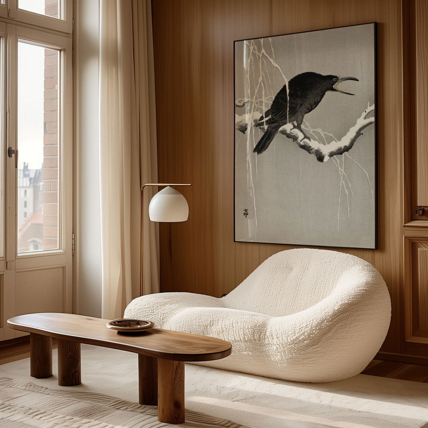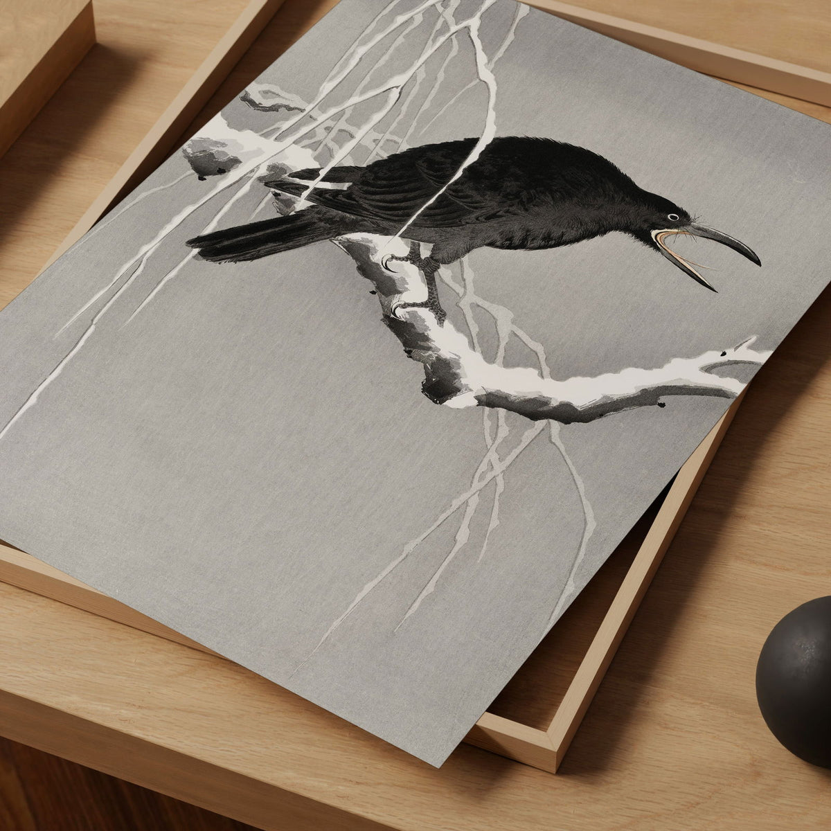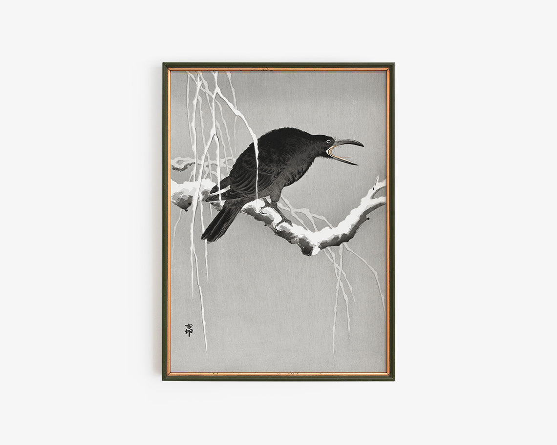 Ohara Koson Cawing Crow in Snow Art Print, Vintage Japanese Wall Art