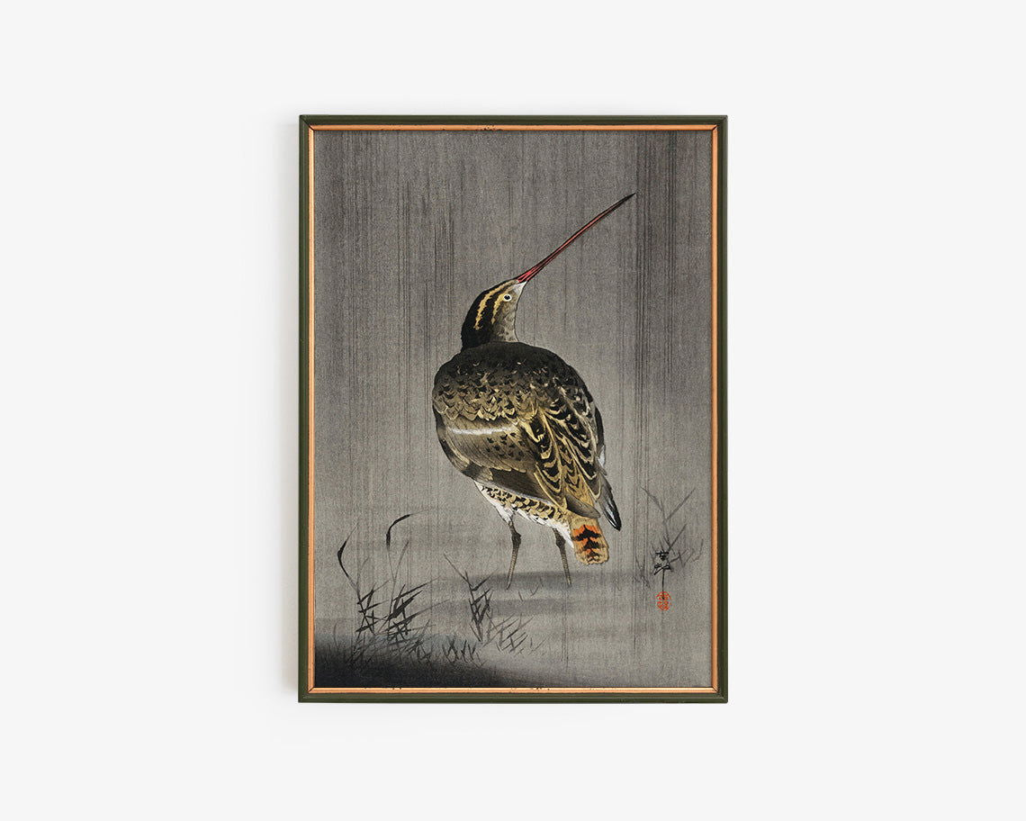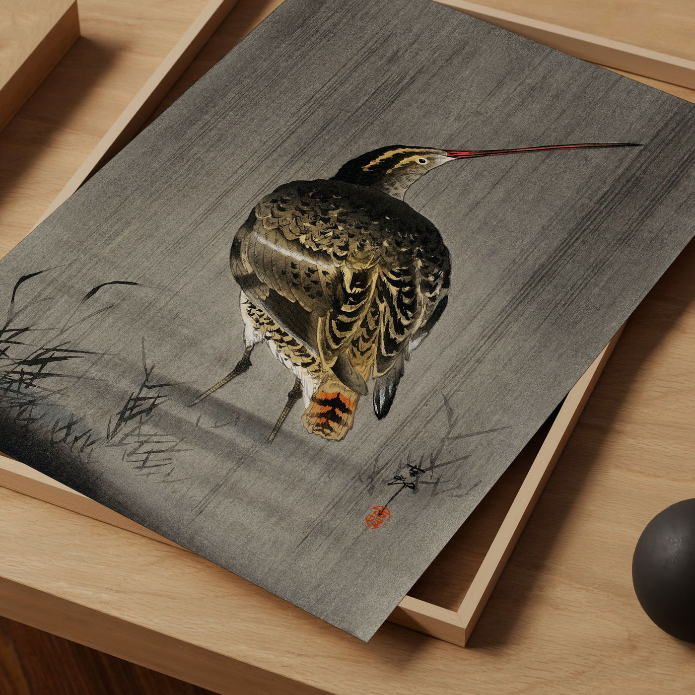 Ohara Koson Snipe in the Rain Art Print, Vintage Japanese Wall Art