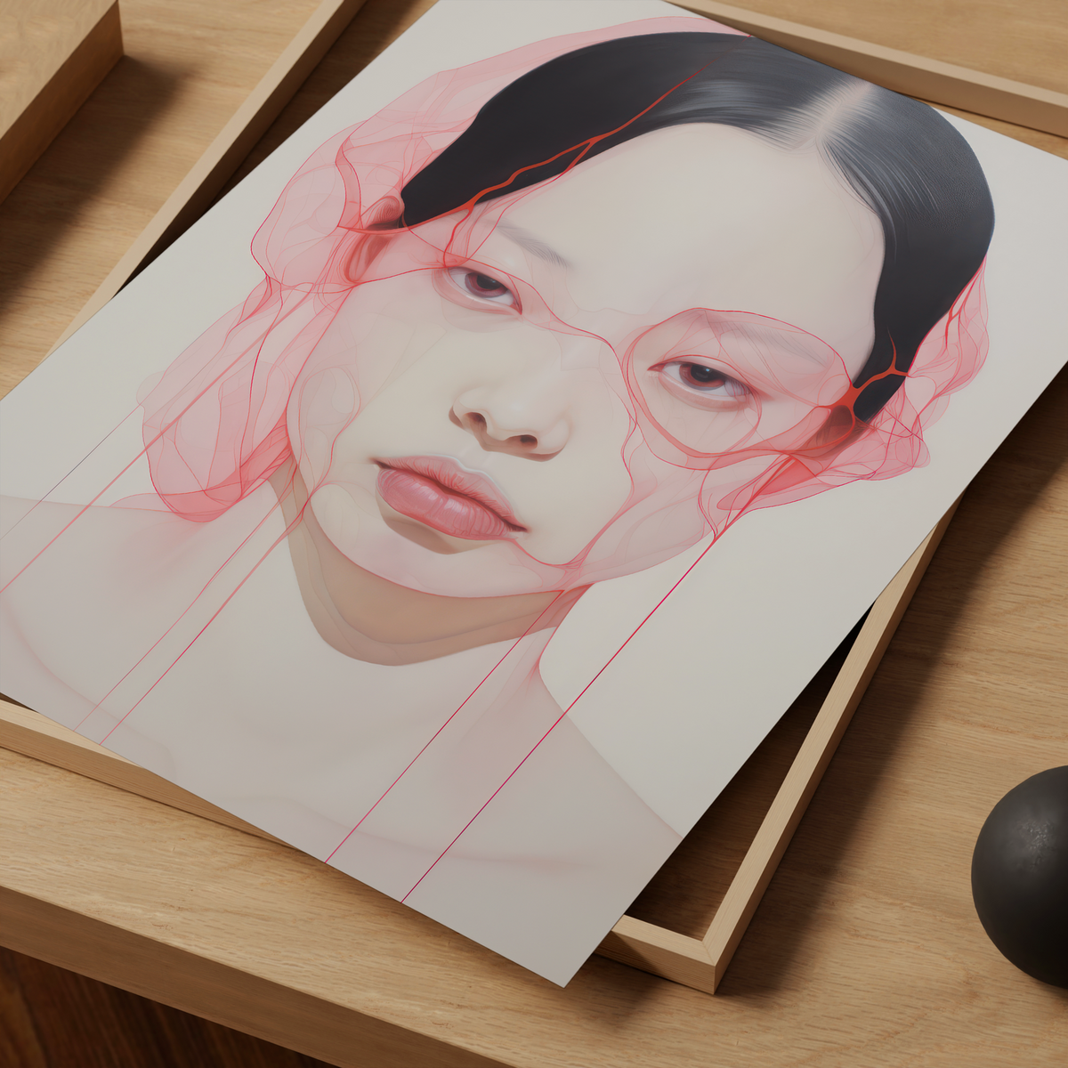 Woman Surreal Portrait, Pink Minimalist Art - Fine Art Paper / 8x10 / No Frame