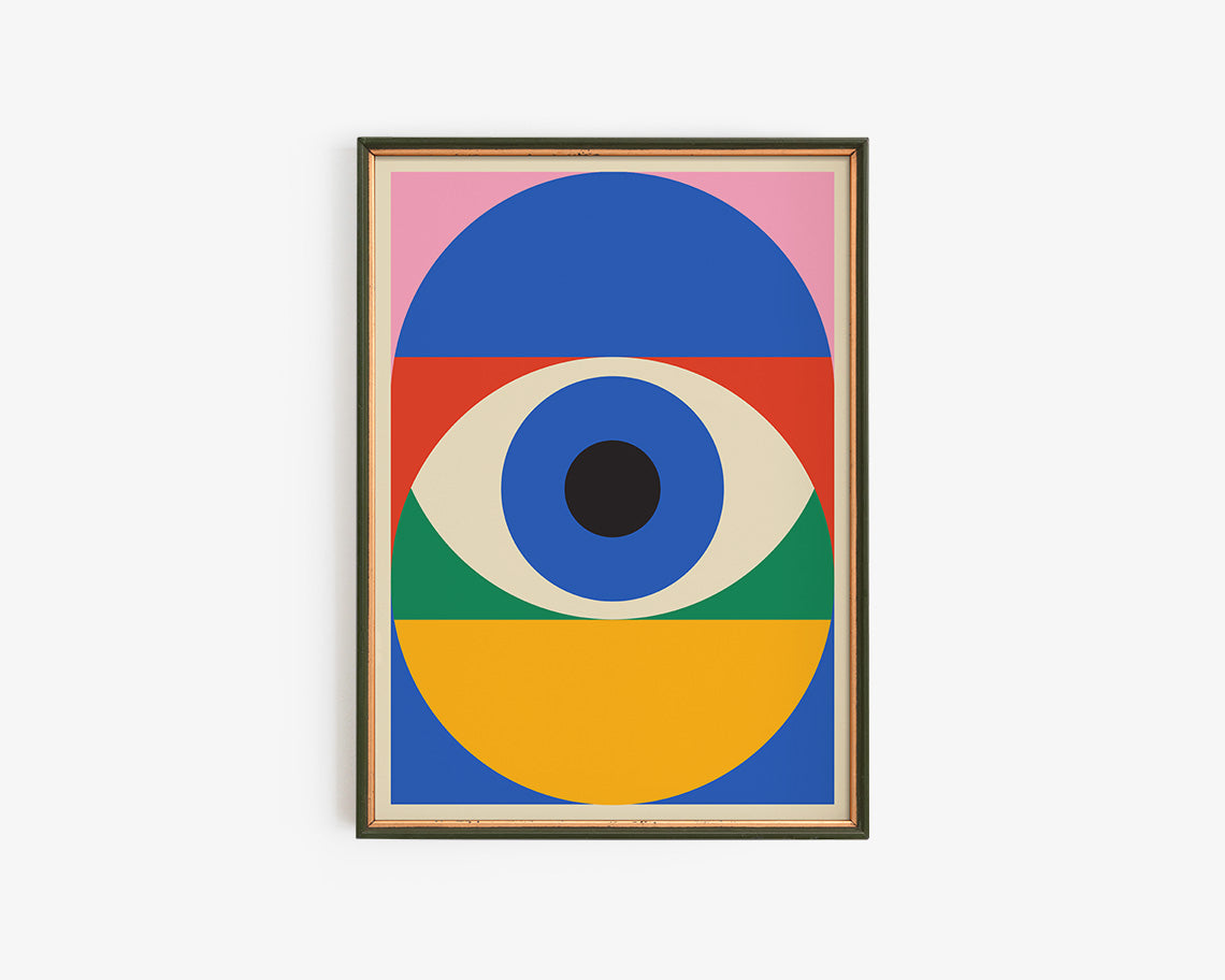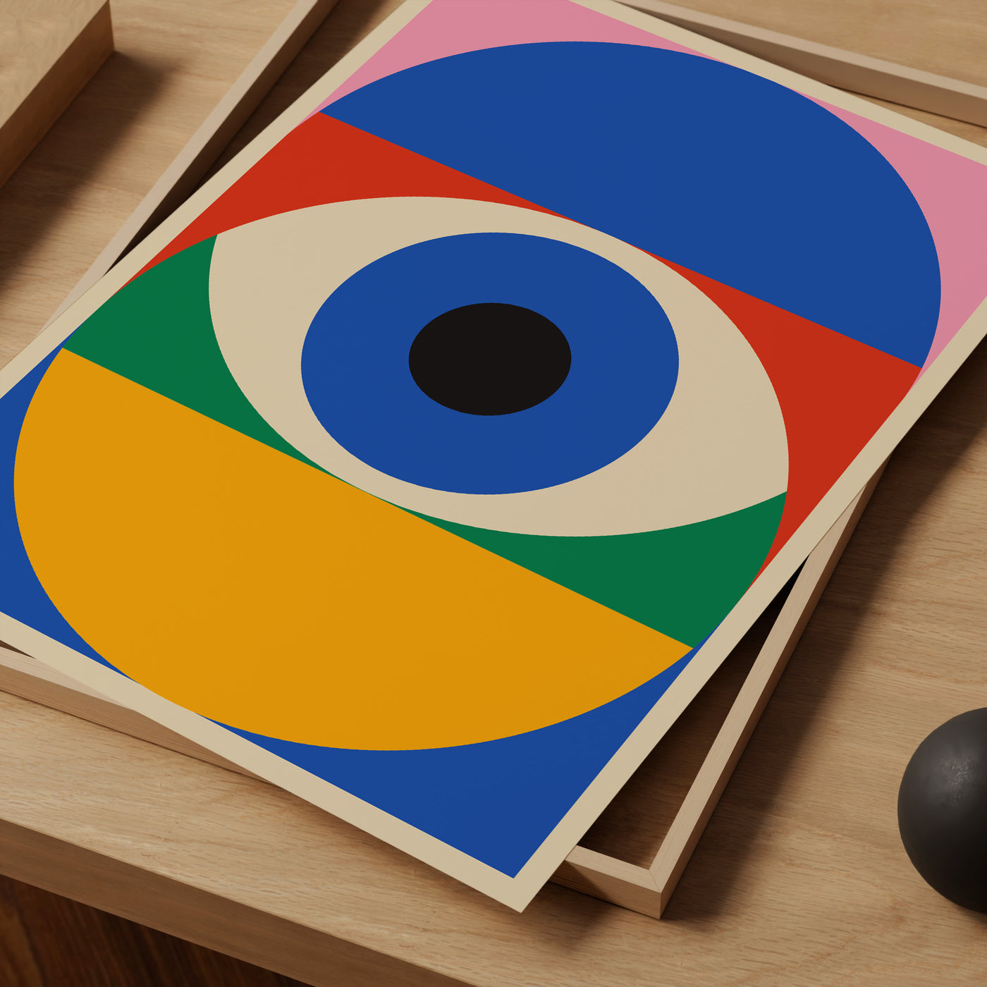 Bauhaus Poster Print, Abstract Multicolor Blue Eye Geometric Collection No. 25