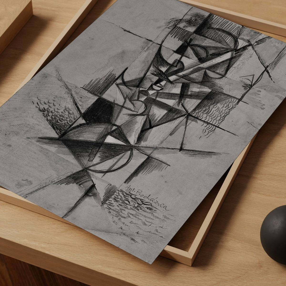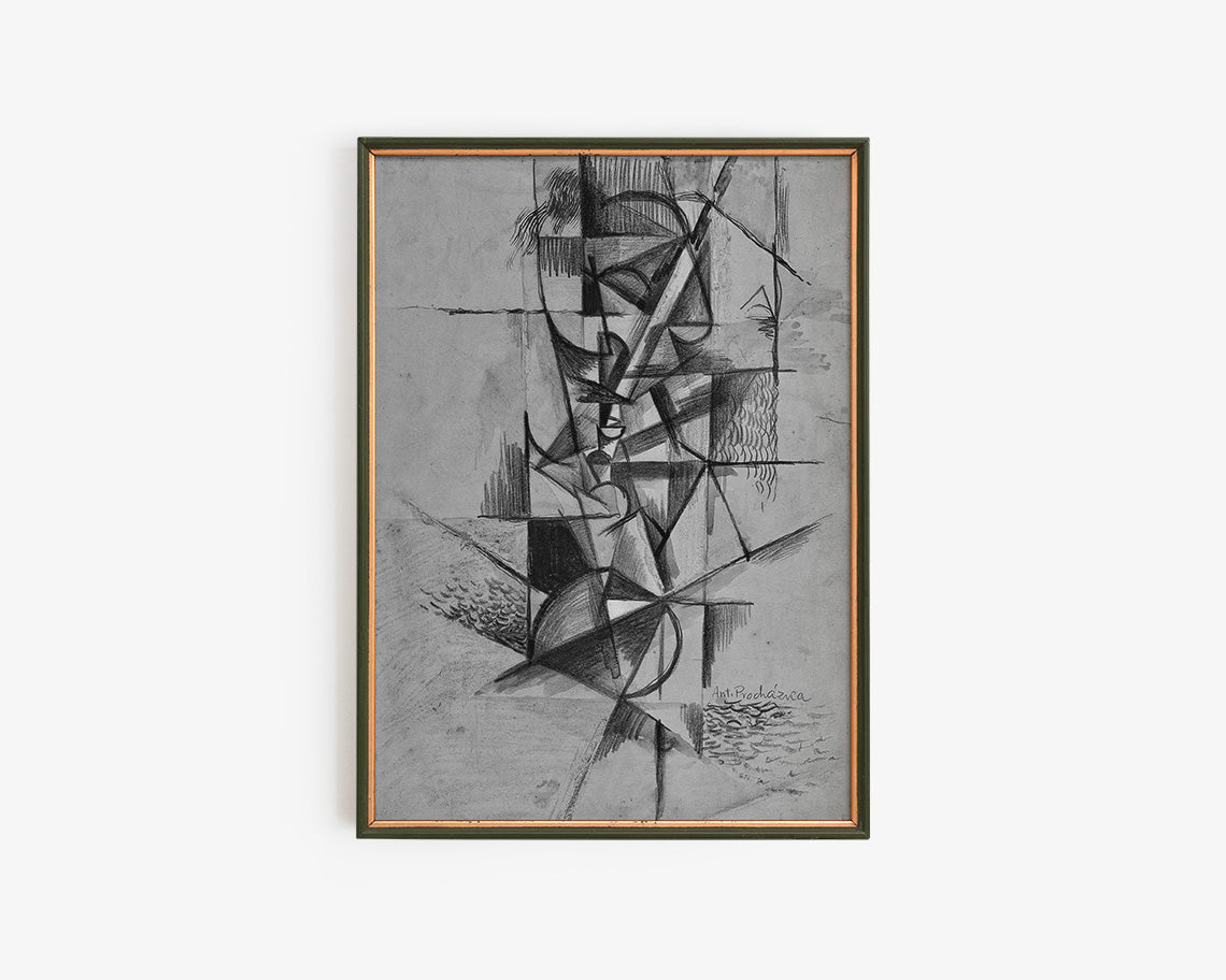 Antonin Prochazka Abstract Art Print, Cubist Head in Black White Beige - Fine Art Paper / 8x10 / No Frame