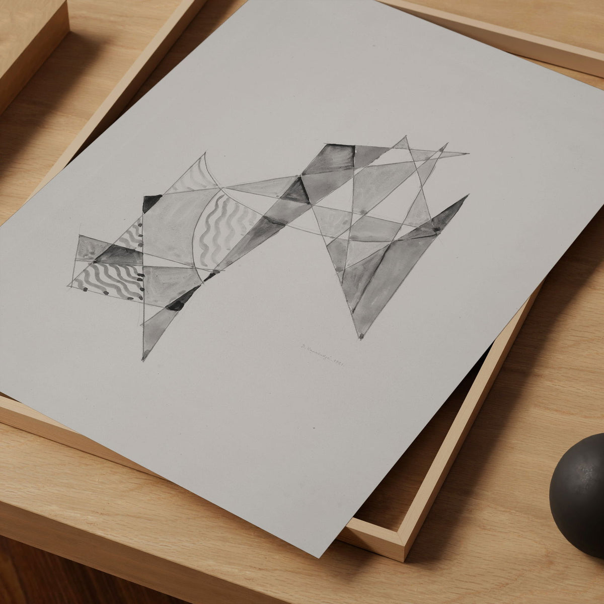 David Kakabadze Abstract Art Print, Abstraction Based On Sails IX in Black White Beige - Fine Art Paper / 8x10 / No Frame