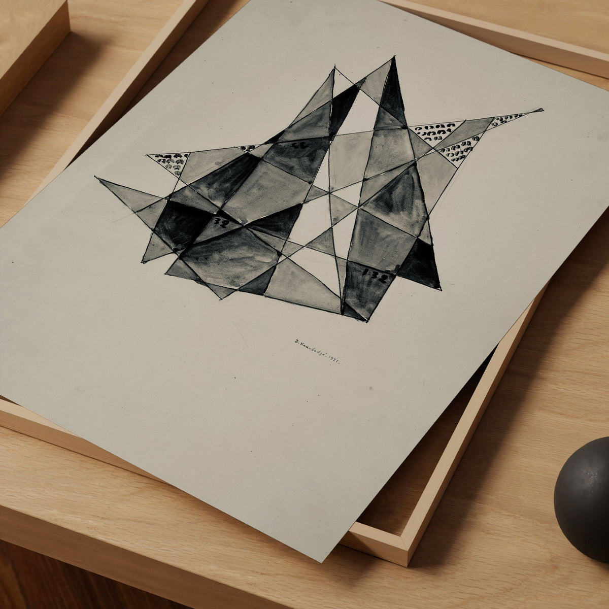 David Kakabadze Abstract Art Print, Abstraction Based on Sails VI in Black White Beige - Fine Art Paper / 8x10 / No Frame