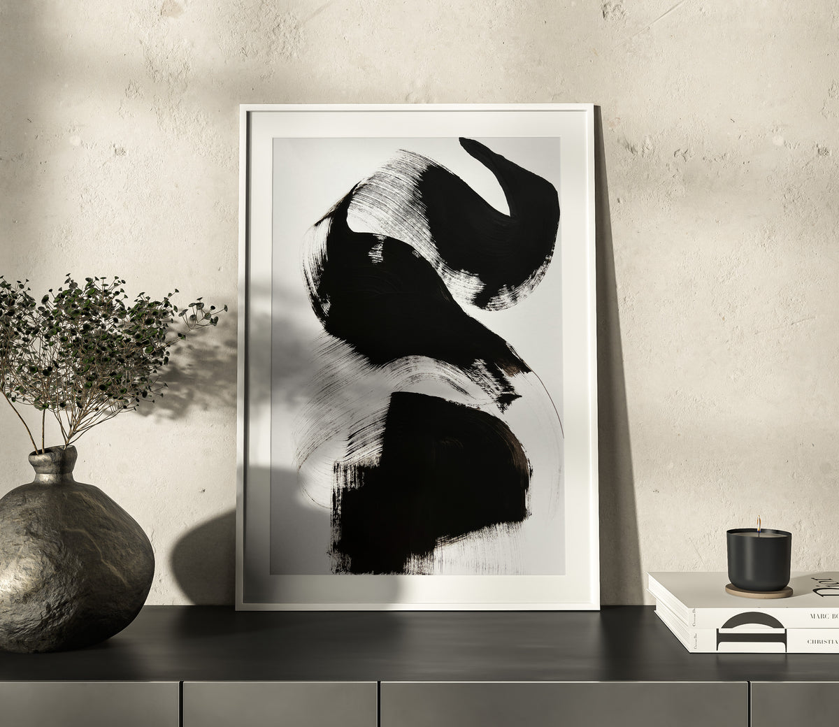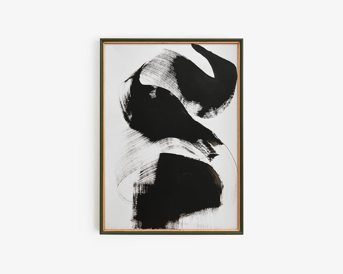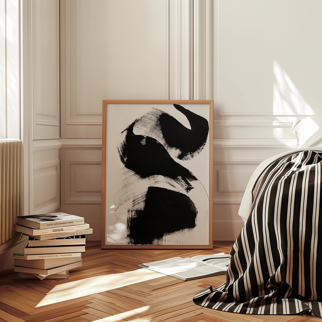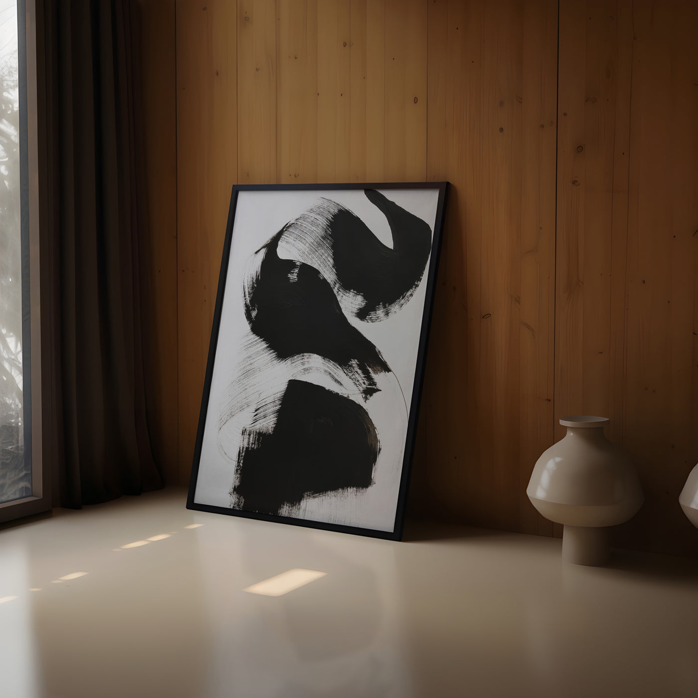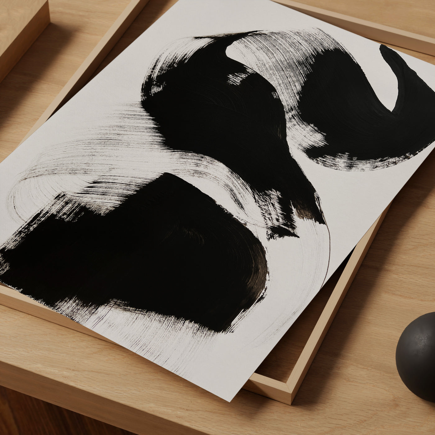 Hand Drawn Abstract Black and White Art Print, Brush Stroke Wall Art No. 007