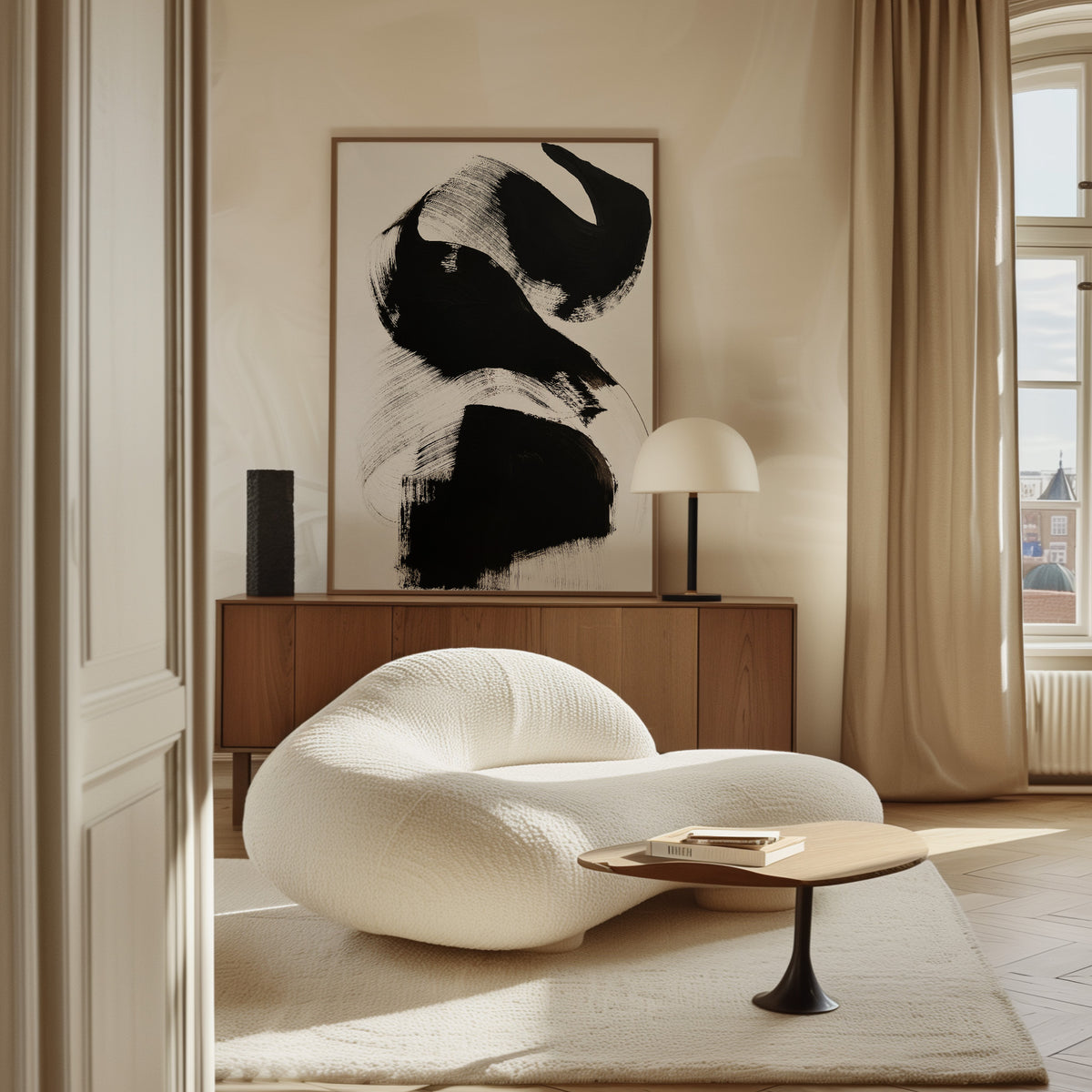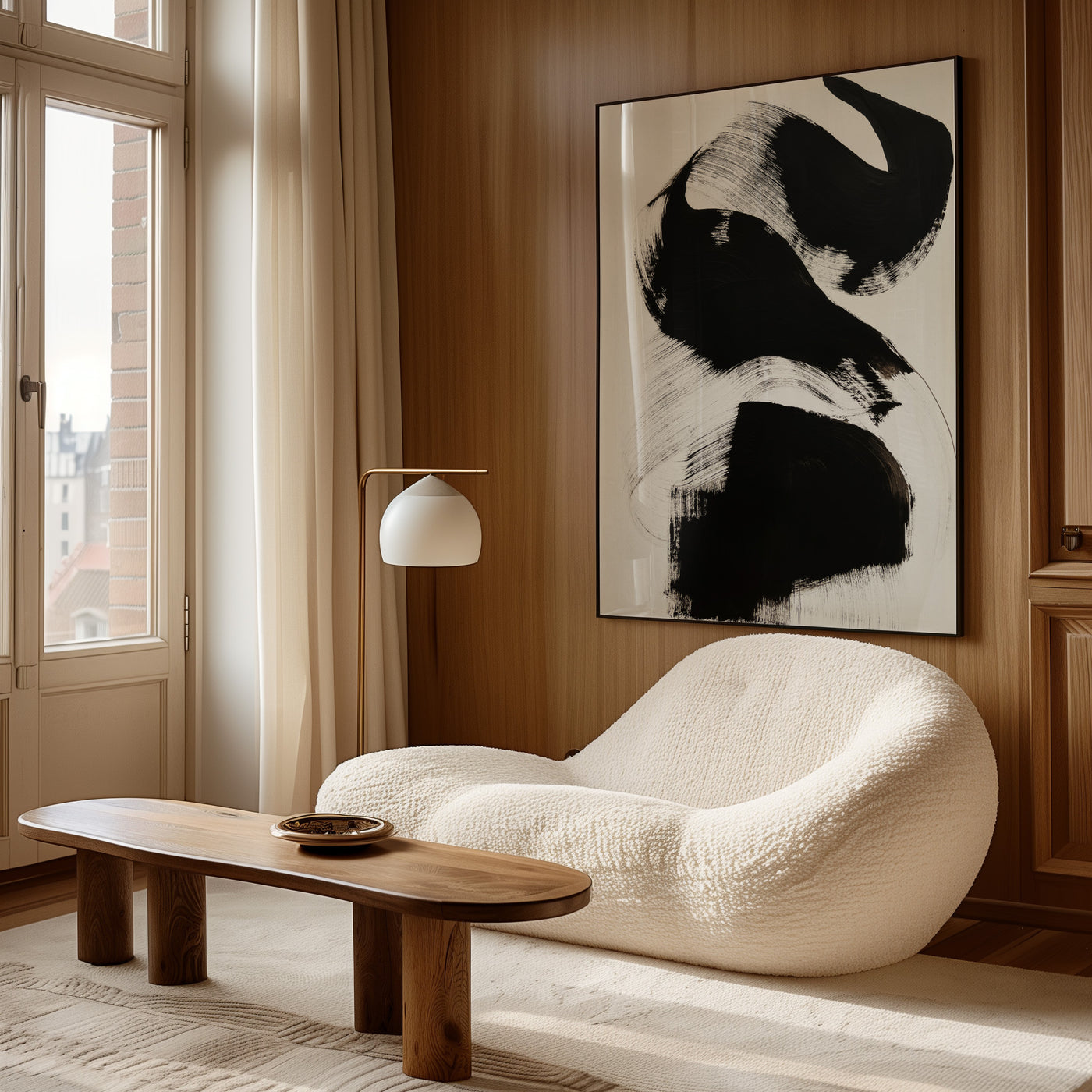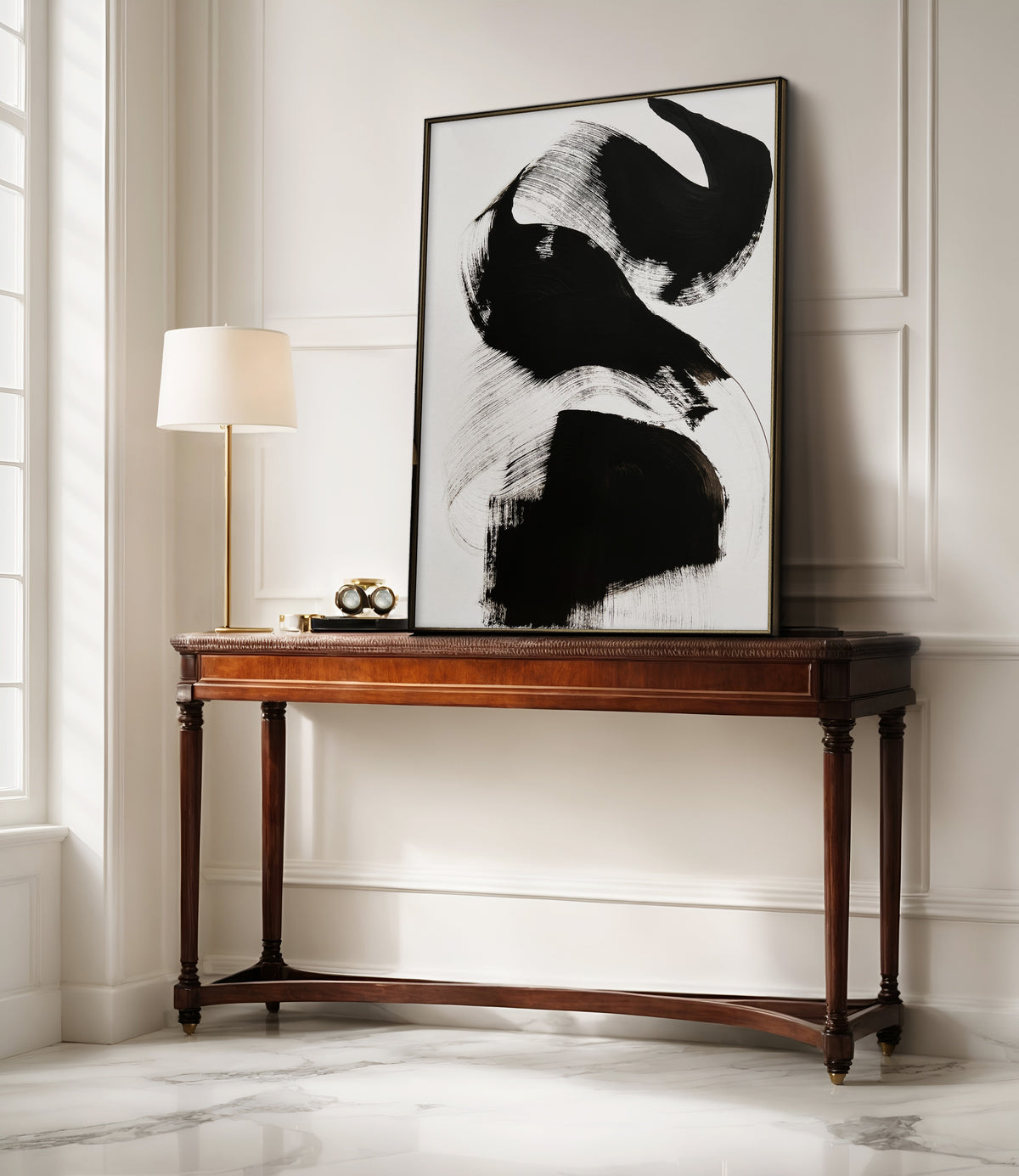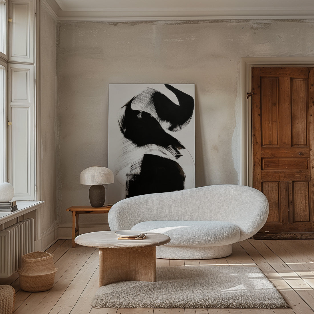Hand Drawn Abstract Black and White Art Print, Brush Stroke Wall Art No. 007