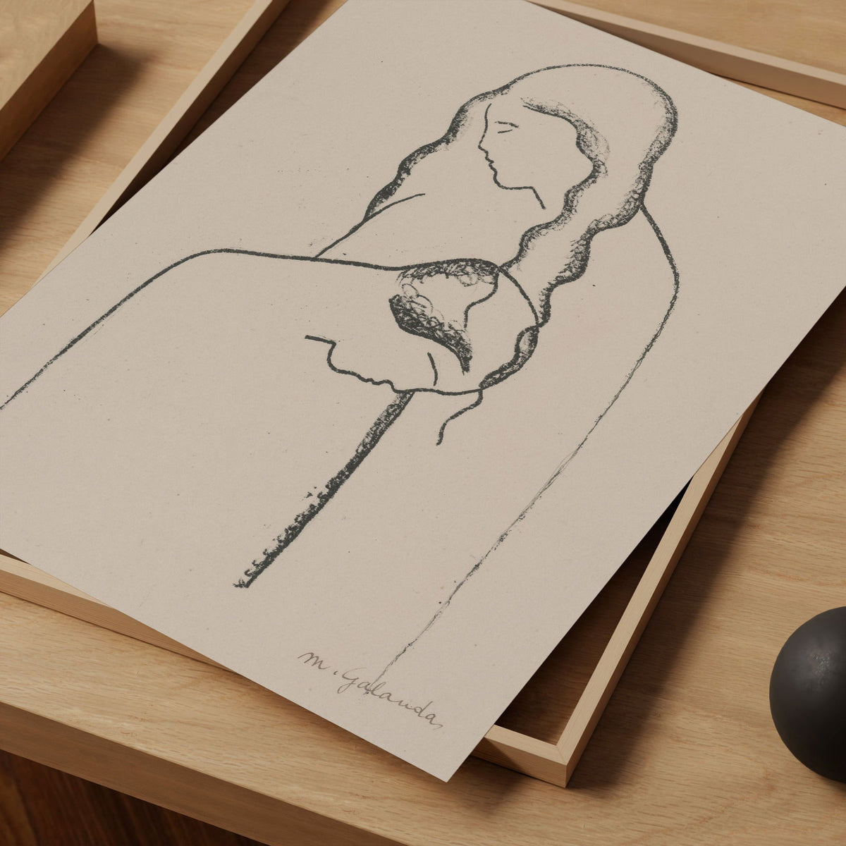Mikulas Galanda Abstract Art Print, Lovers II in Black White Beige - Fine Art Paper / 8x10 / No Frame