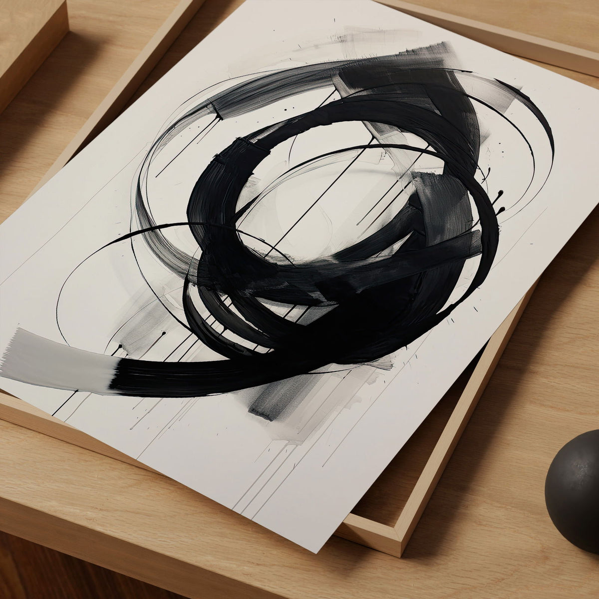 Minimalist Abstract Art Print, Black White Line Art