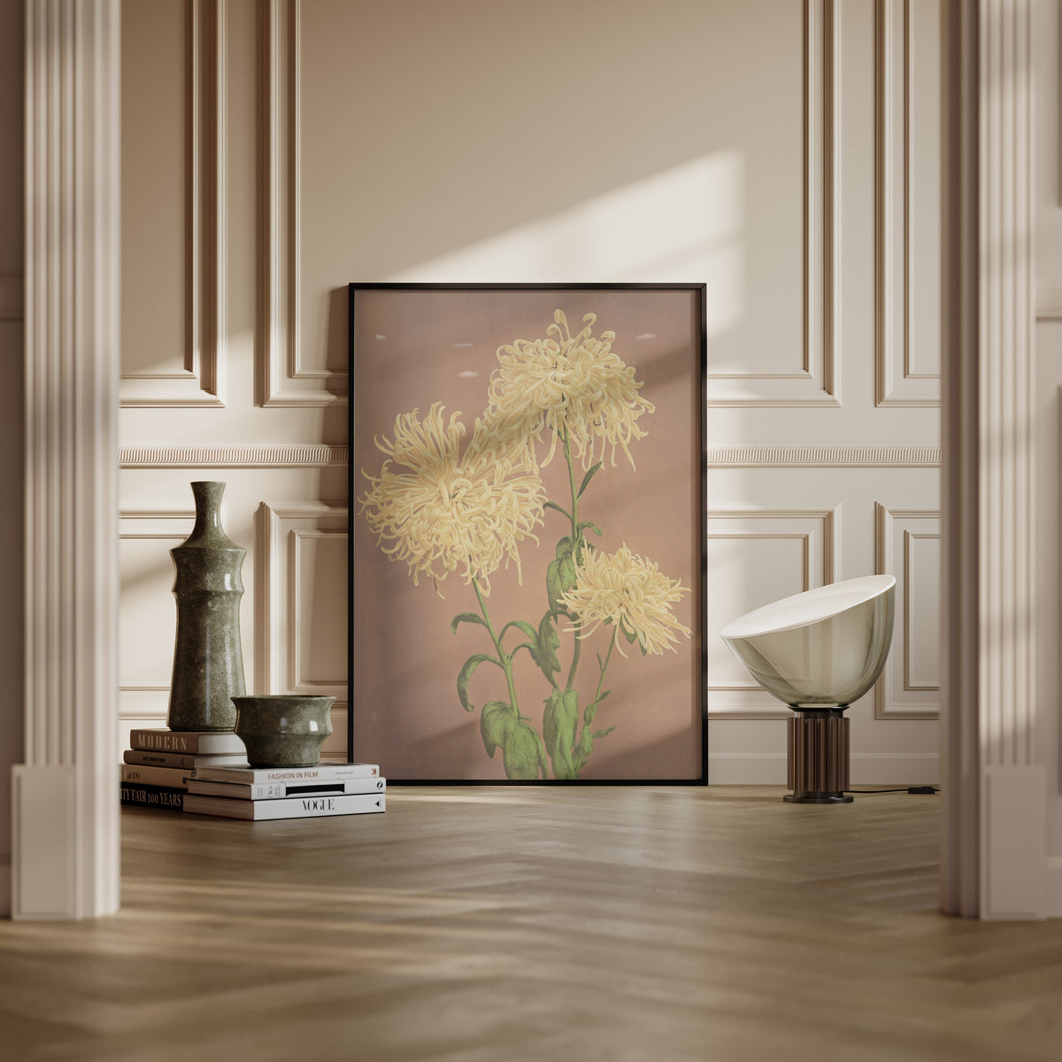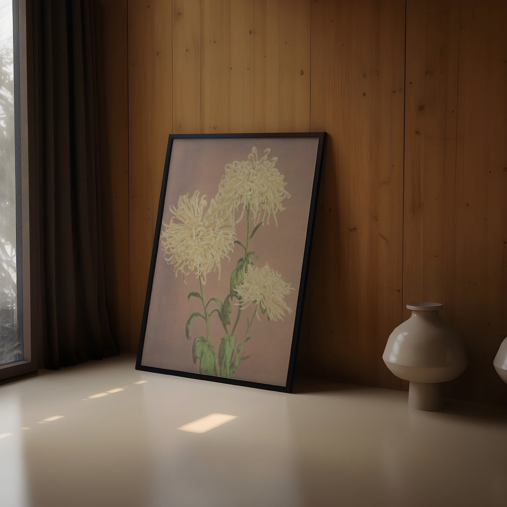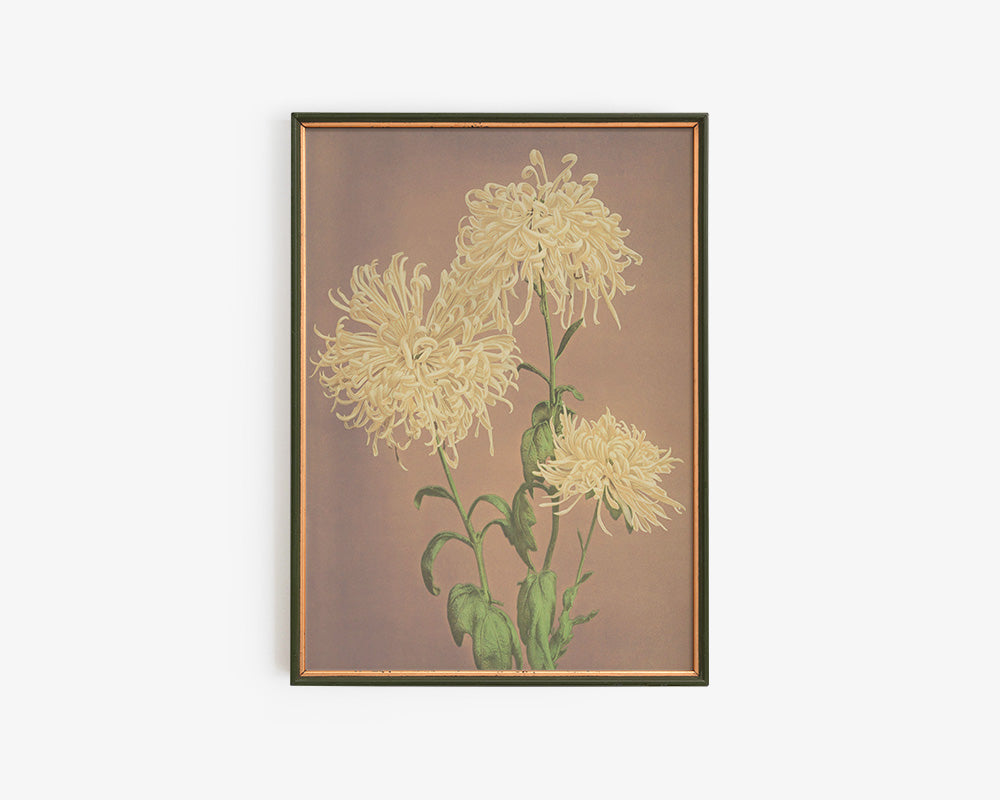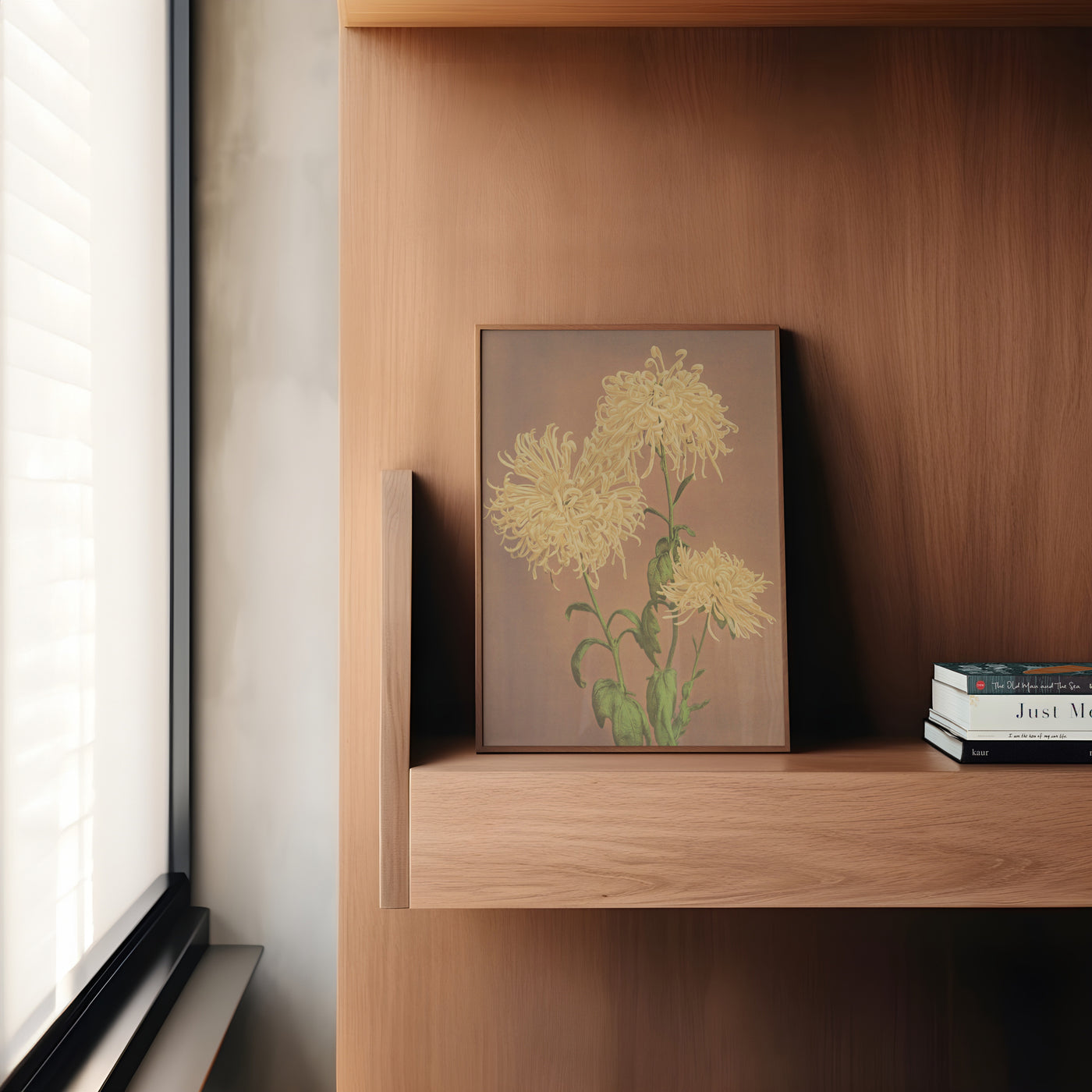 Ogawa Kazumasa Three Yellow Chrysanthemum Print, Vintage Flower Wall Art - Fine Art Paper / 8x10 / No Frame
