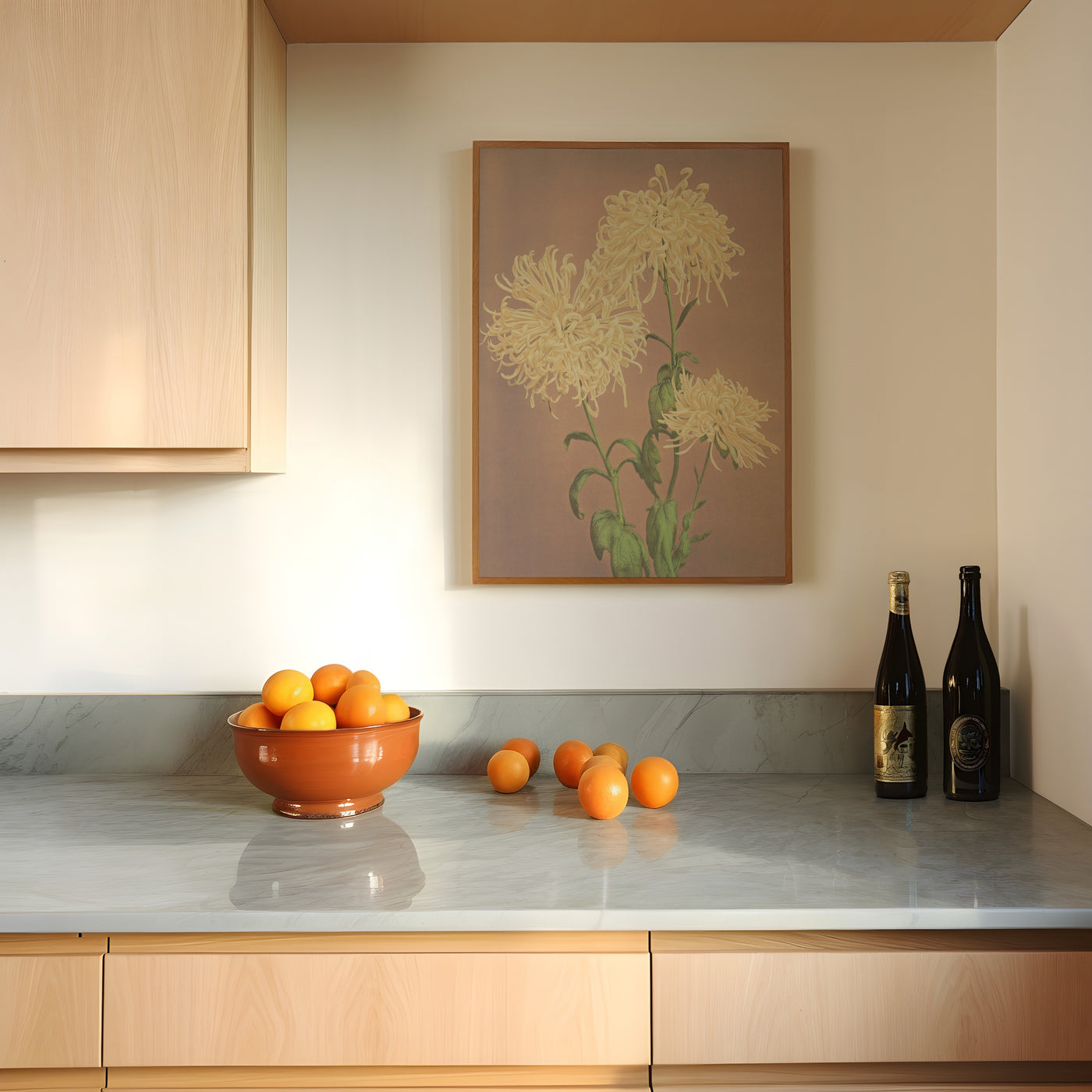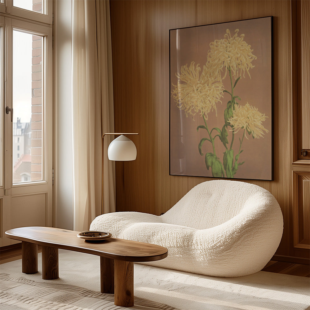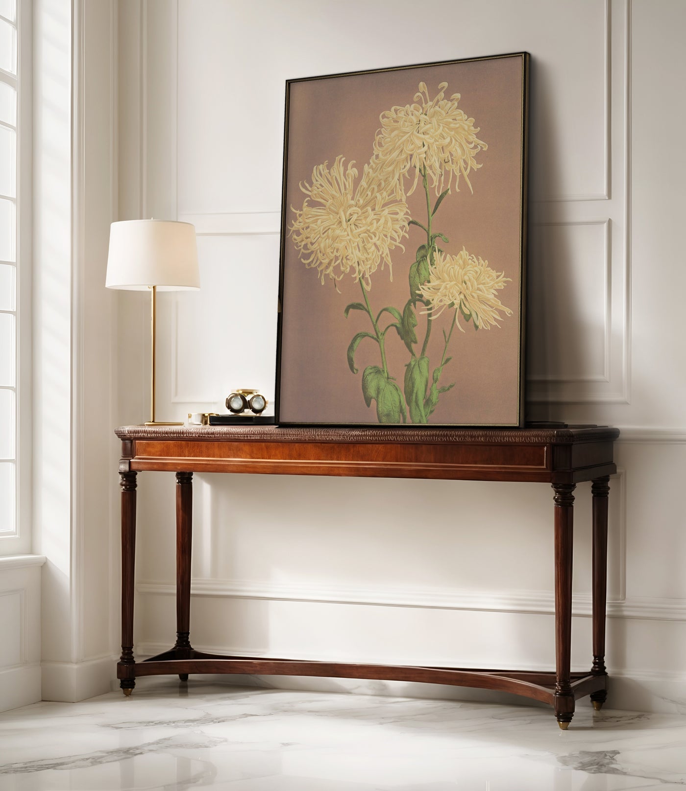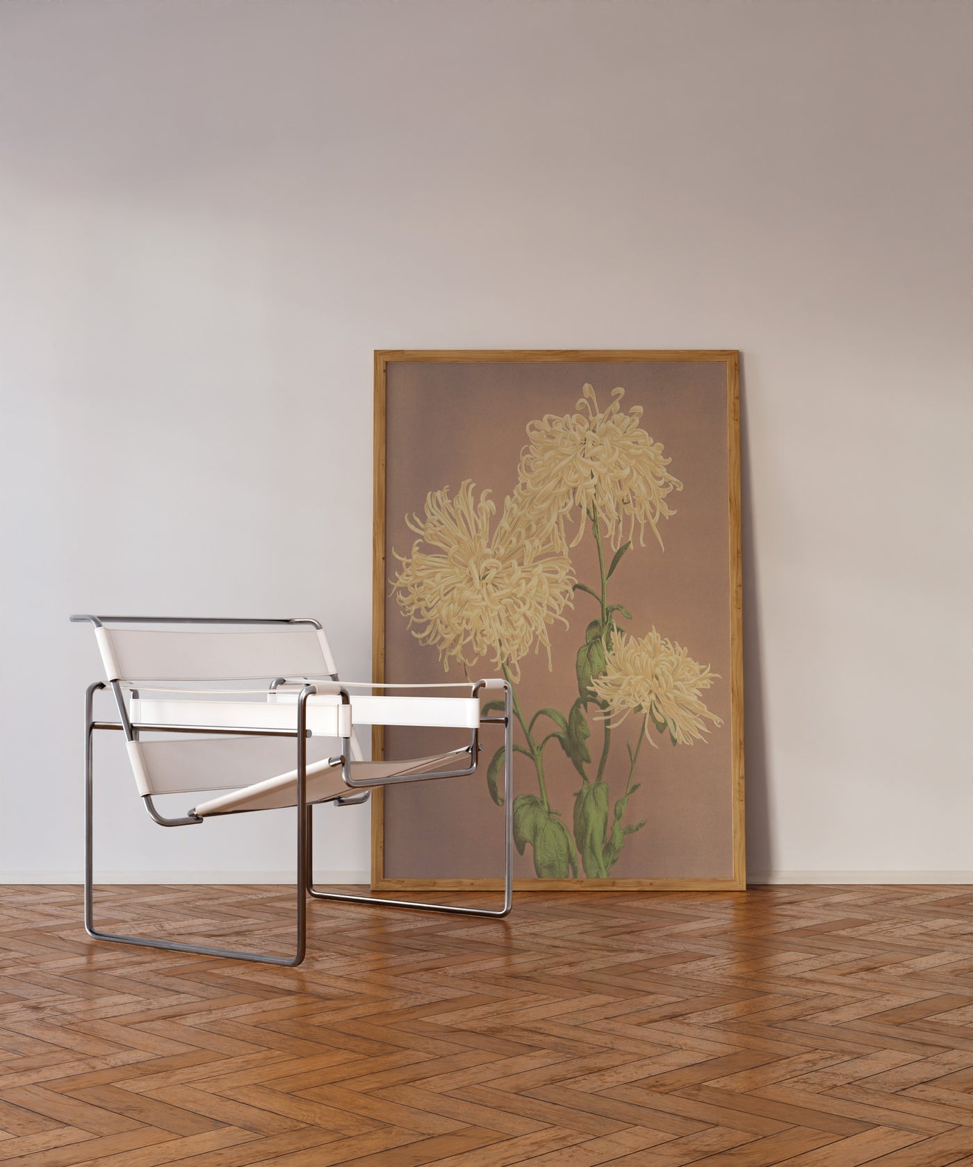 Ogawa Kazumasa Three Yellow Chrysanthemum Print, Vintage Flower Wall Art - Fine Art Paper / 8x10 / No Frame