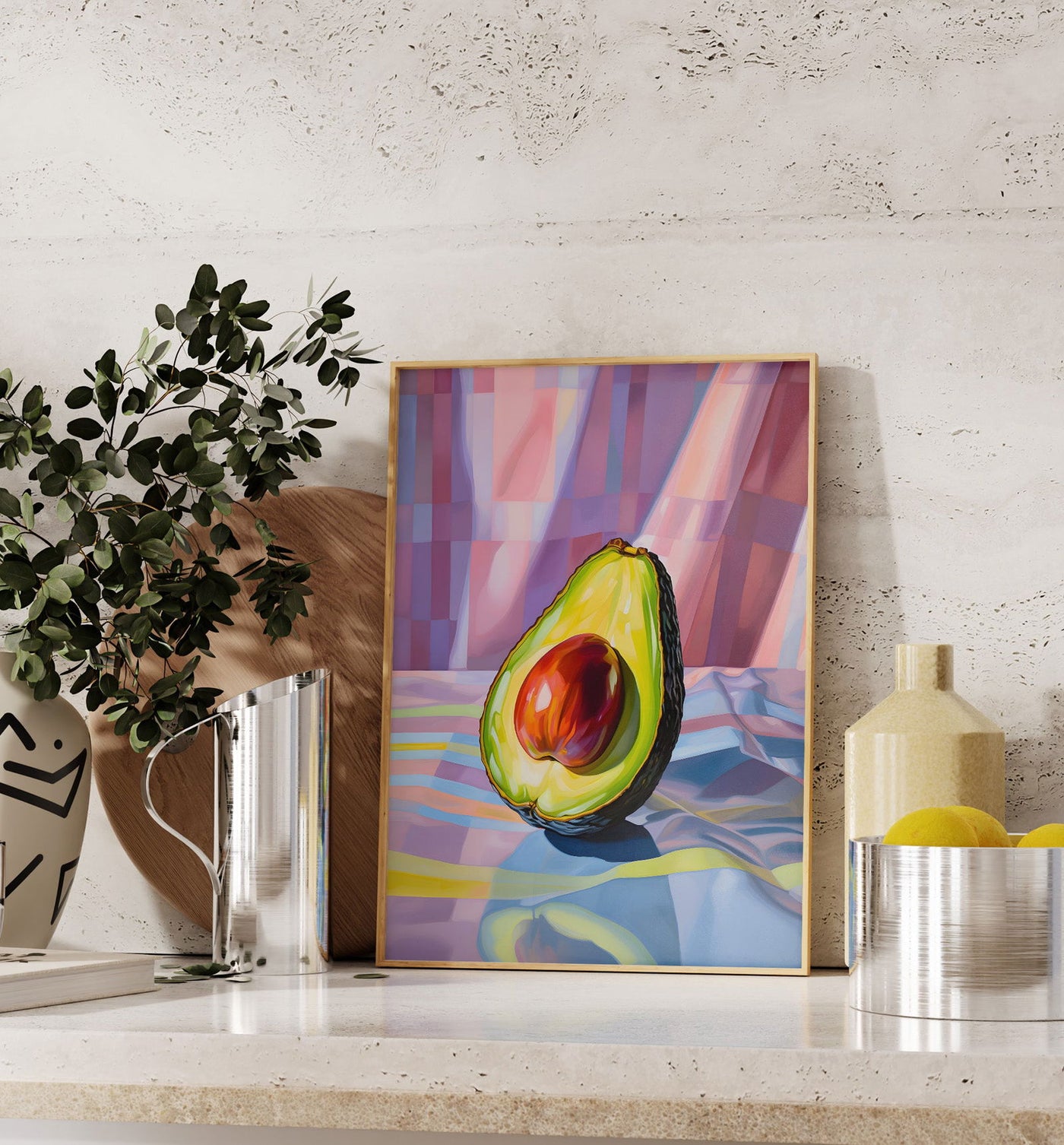 Gingham Kitchen Print, Avocado Food Poster - Fine Art Paper / 8x10 / No Frame