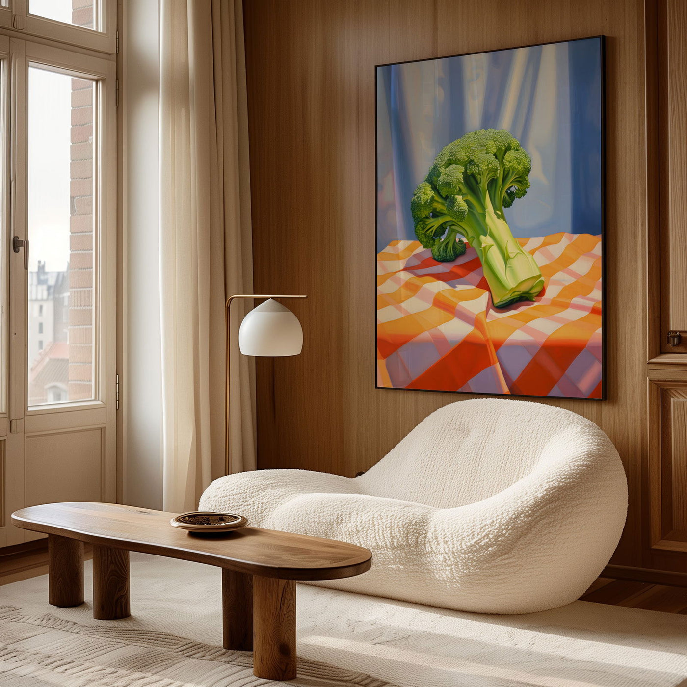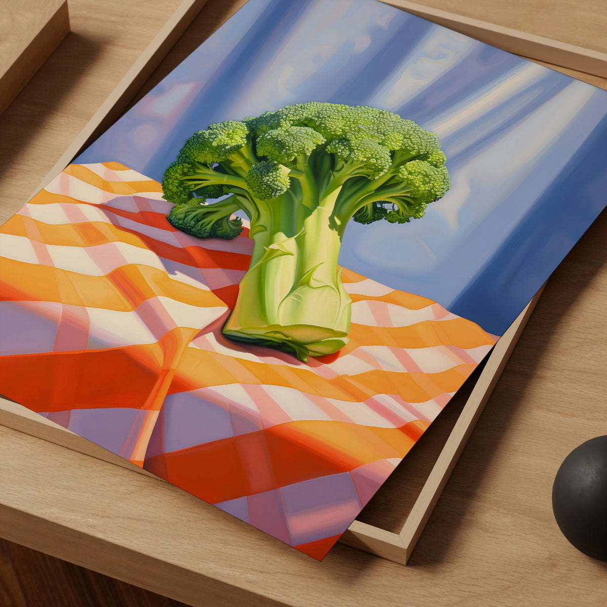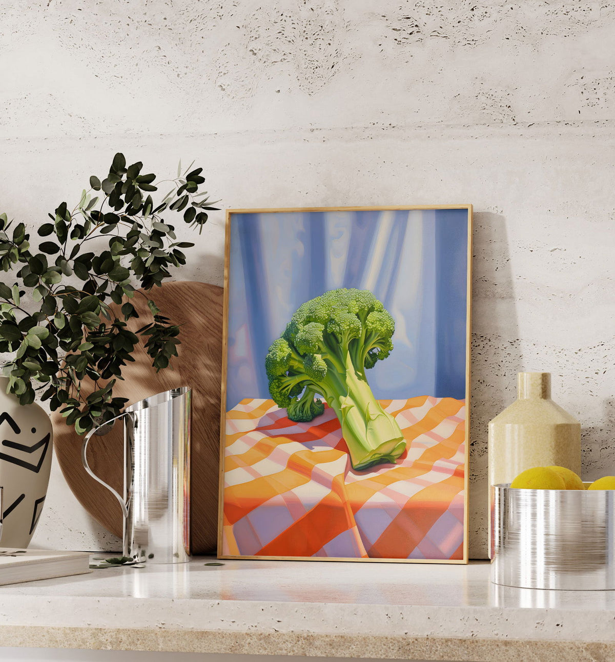 Gingham Kitchen Print, Broccli Food Poster - Fine Art Paper / 8x10 / No Frame