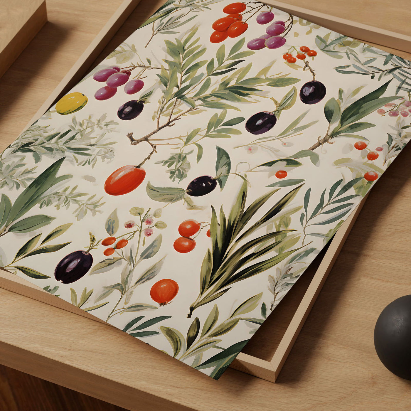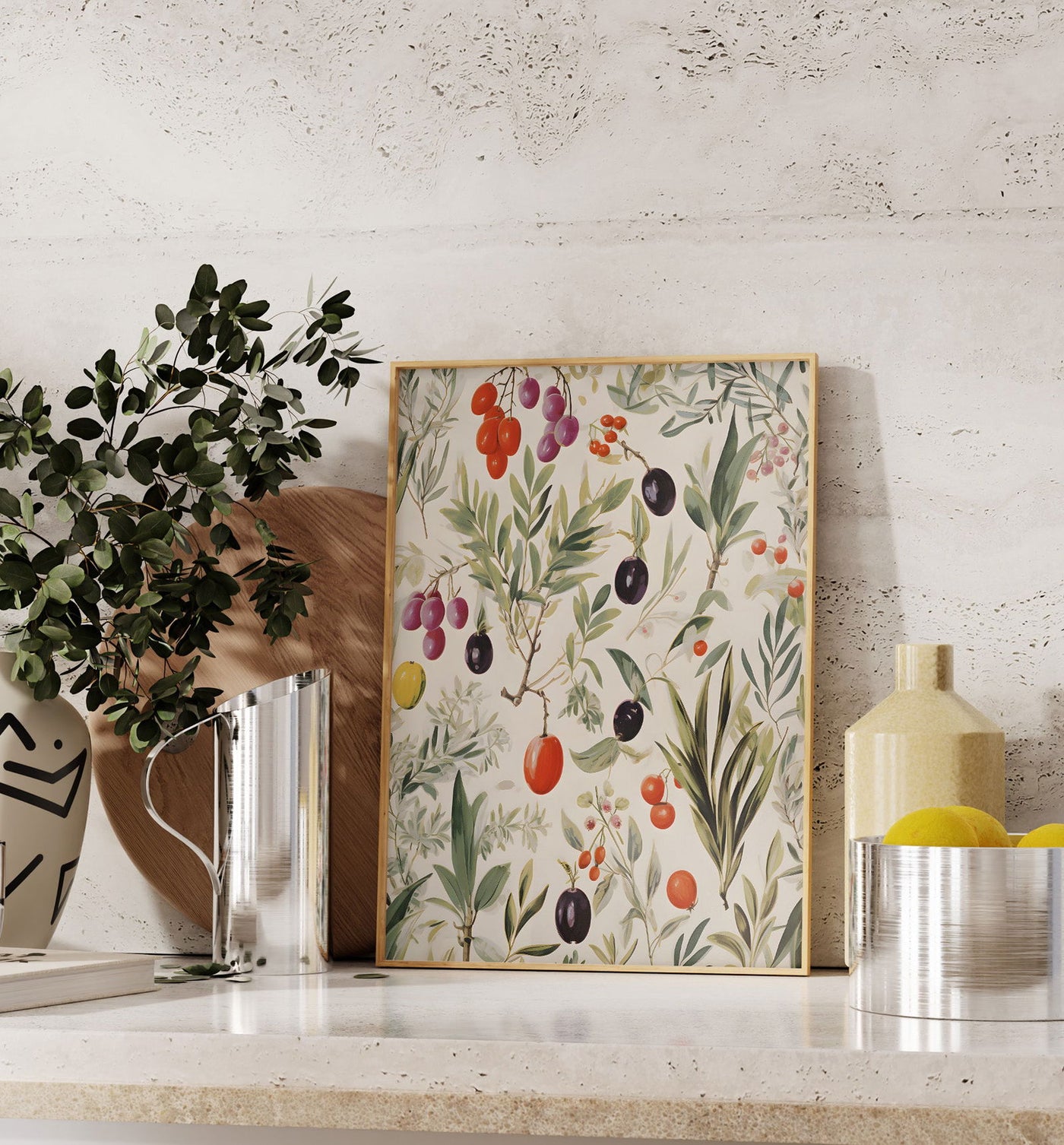 Olives Italian Food Poster, Mediterranean Wall Art - Fine Art Paper / 8x10 / No Frame