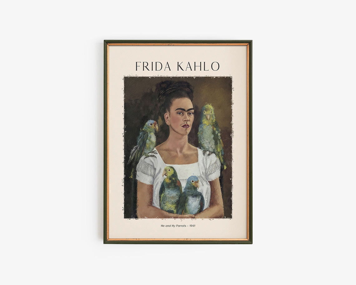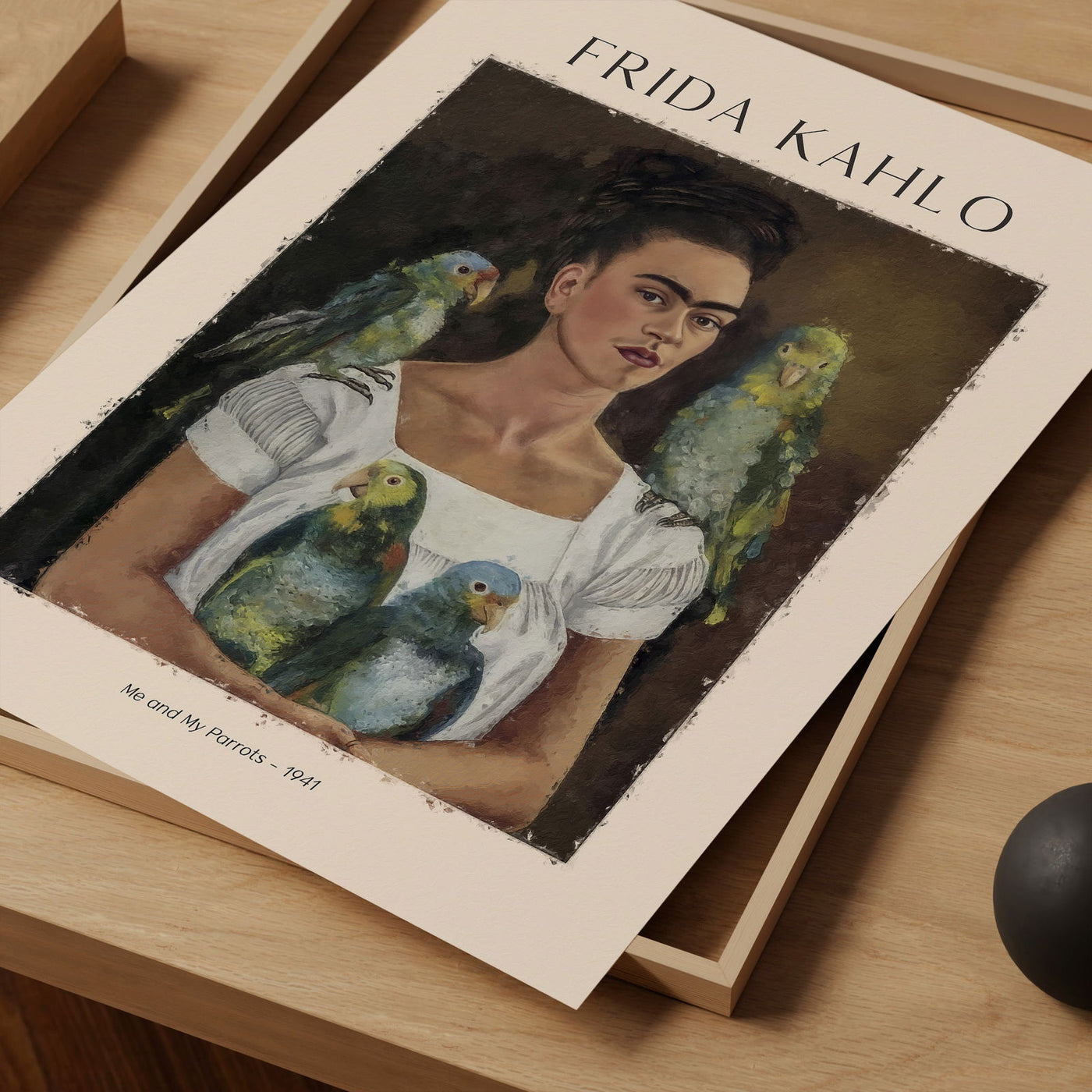 Frida Kahlo Exhibition Print, Digital Print of Me and My Parrots - Fine Art Paper / 8x10 / No Frame