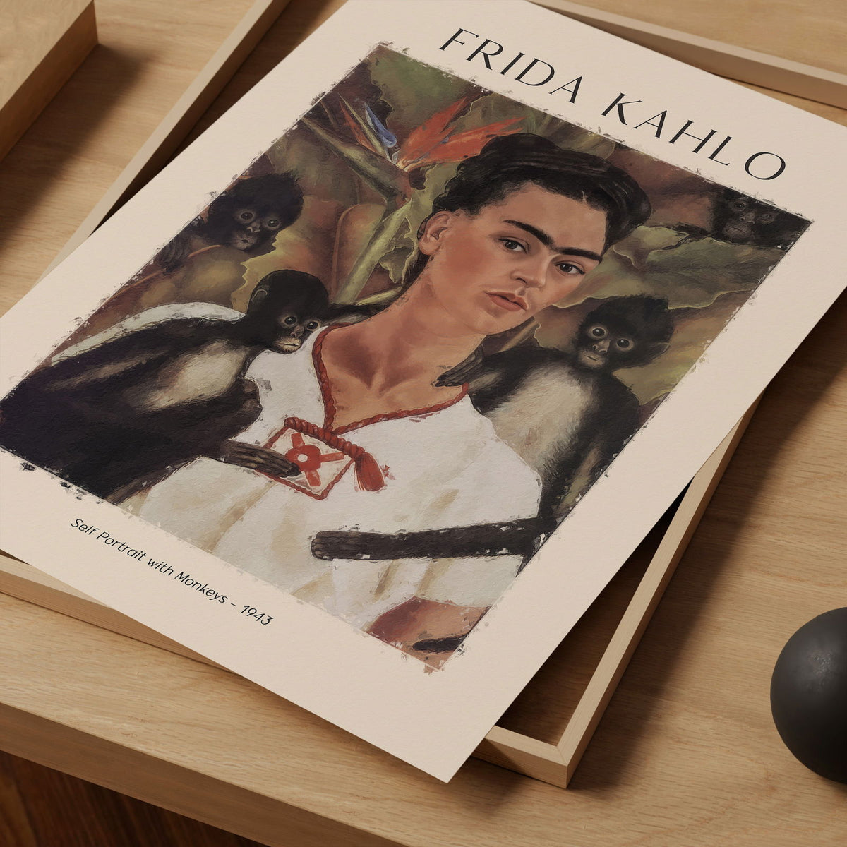 Frida Kahlo Exhibition Print, Digital Print of Self Portrait with Monkeys - Fine Art Paper / 8x10 / No Frame