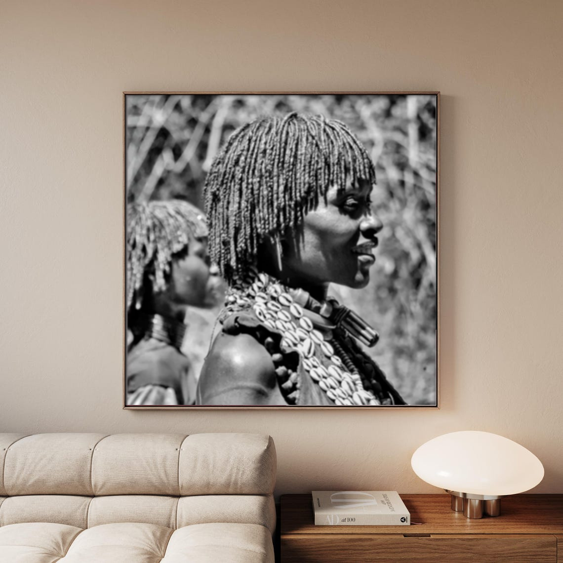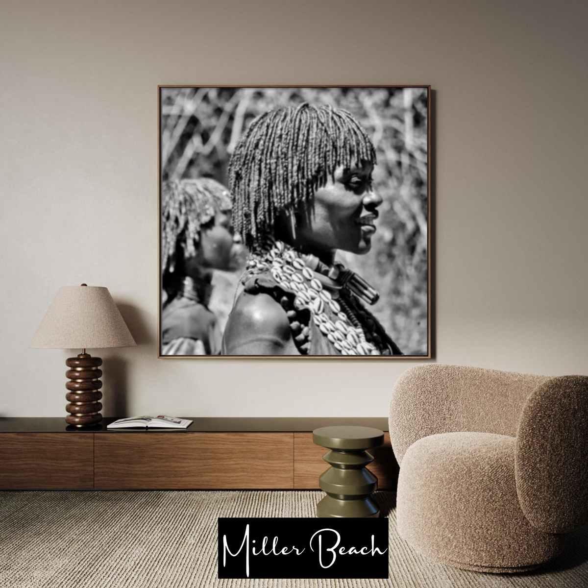 African Tribal Woman Black and White Photograph Print, Black Art - Fine Art Paper / 8x8 / No Frame