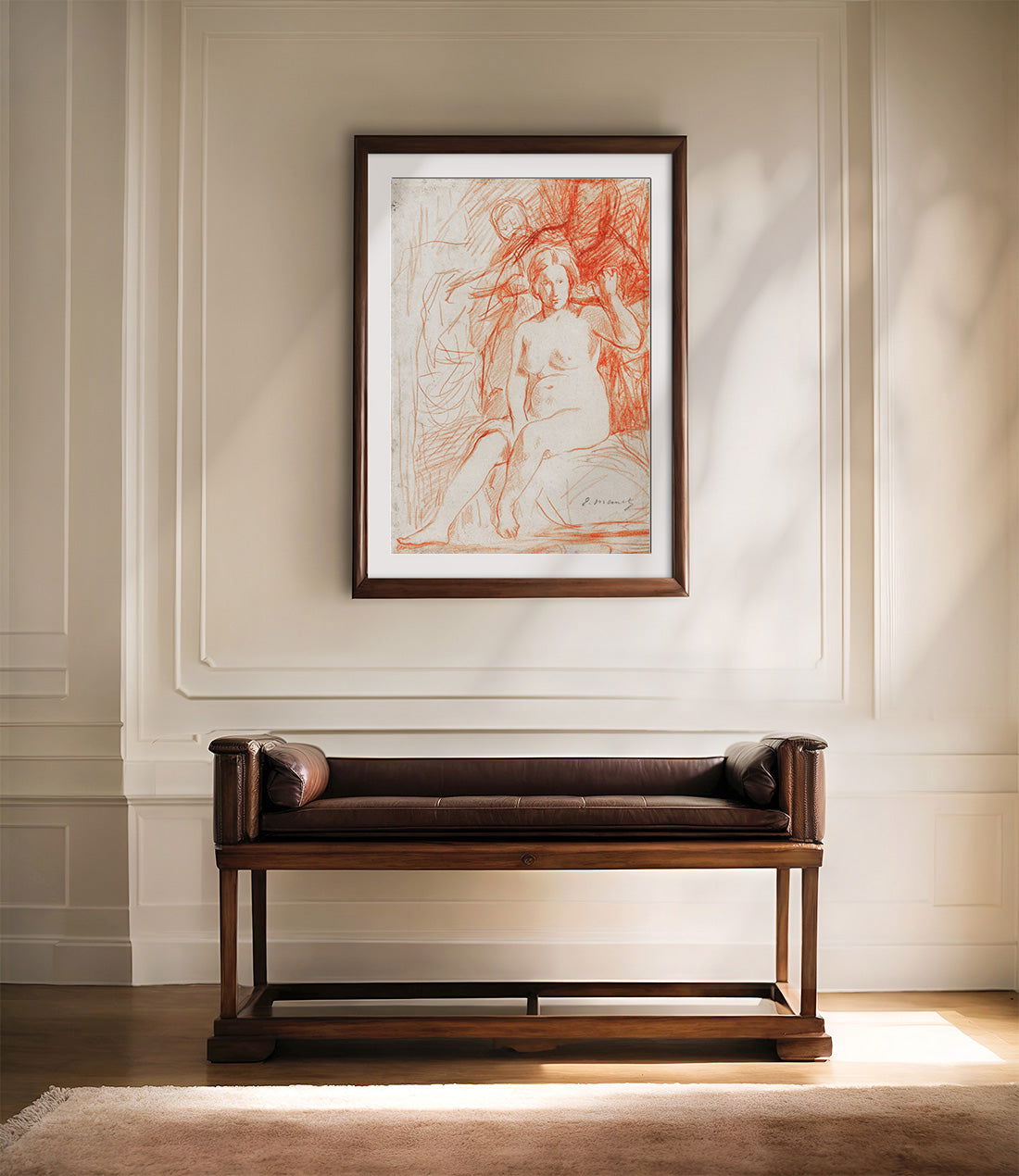 Edouard Manet Seated Nude Drawing Art Print, Vintage Wall Art