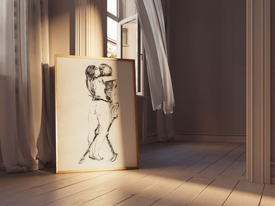 Edvard Munch Death and the Woman Art Print, Vintage Wall Art