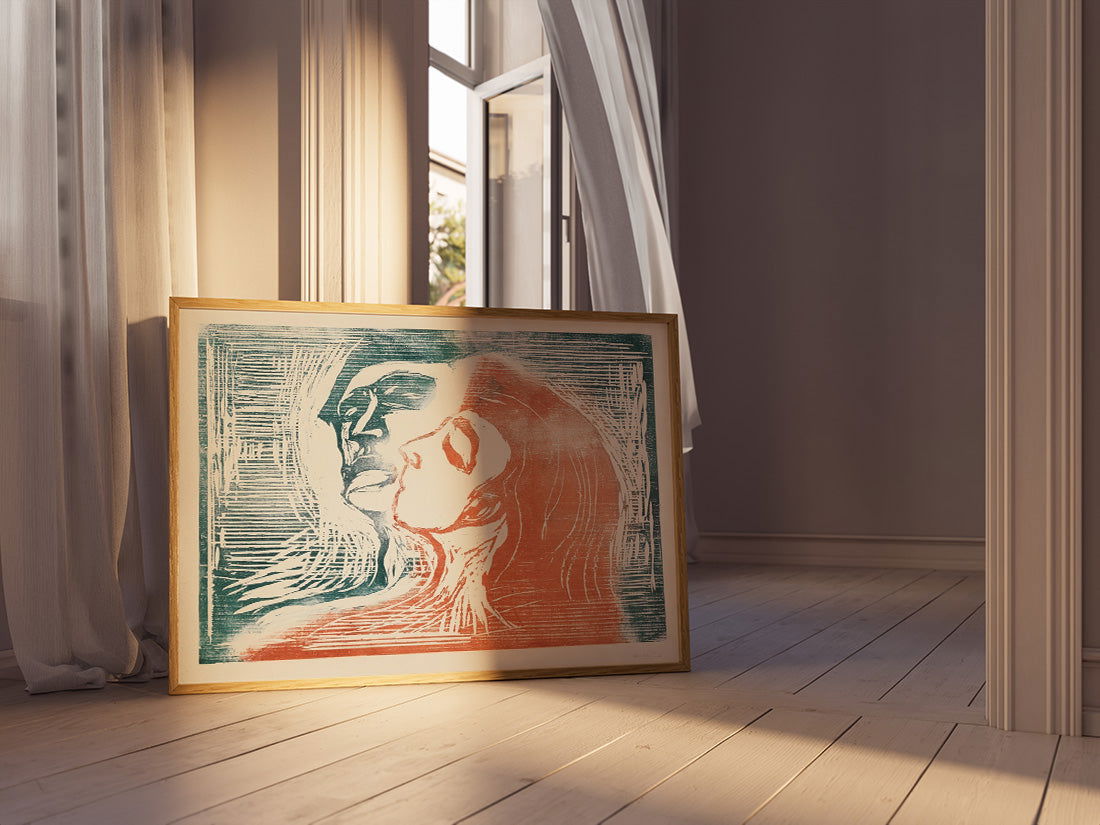 Edvard Munch Head by Head (man and woman kissing) Art Print, Vintage Wall Art