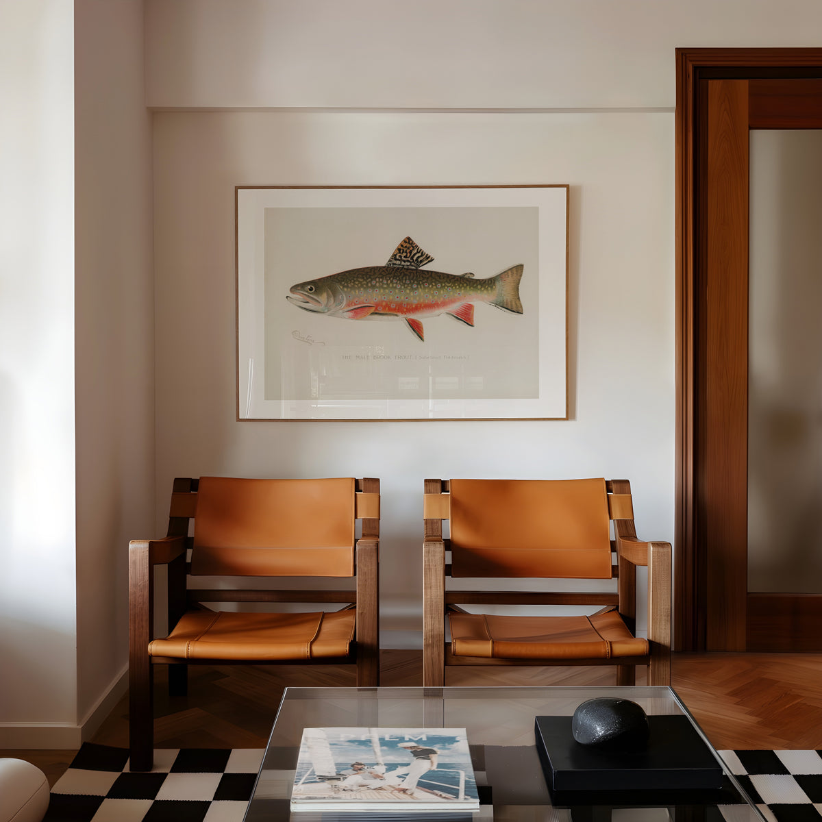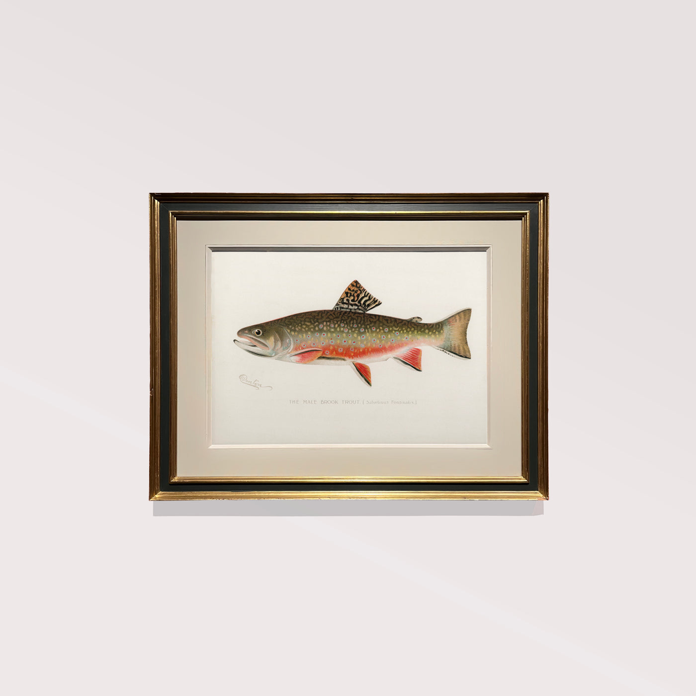 Male Brook Trout Fish Illustration Print Sherman F. Denton, Marine Vintage Wall Art