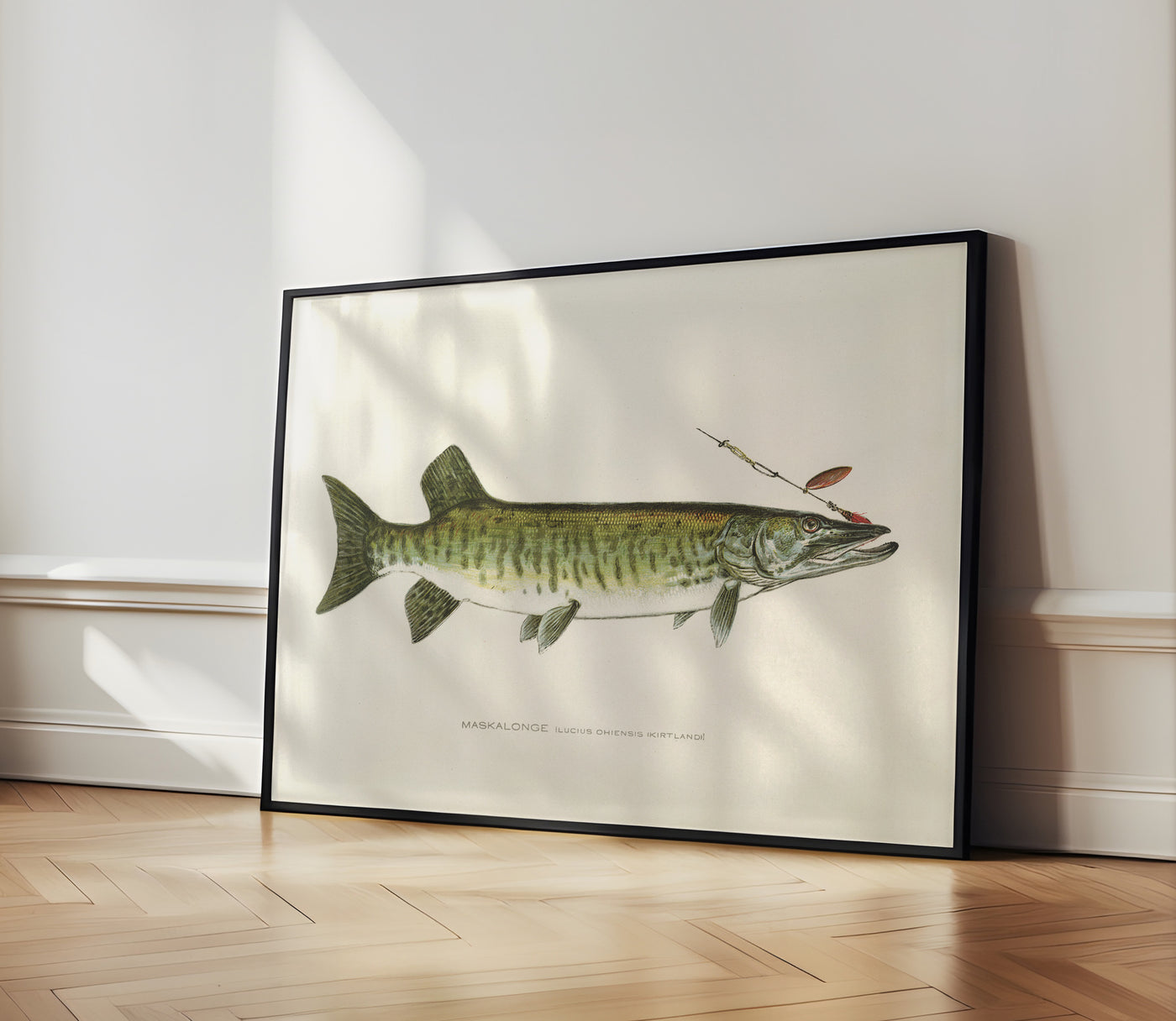 Maskalonge Fish Illustration Print Sherman F. Denton, Marine Vintage Wall Art - Fine Art Paper / 8x10 / No Frame