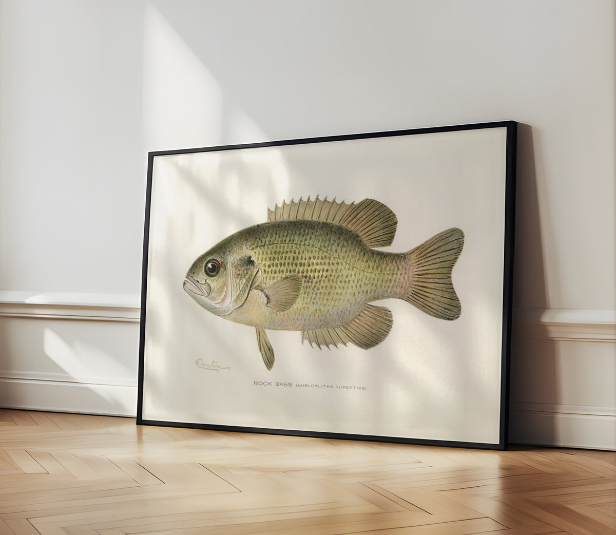 Rock Bass Fish Illustration Print Sherman F. Denton, Marine Vintage Wall Art - Fine Art Paper / 8x10 / No Frame