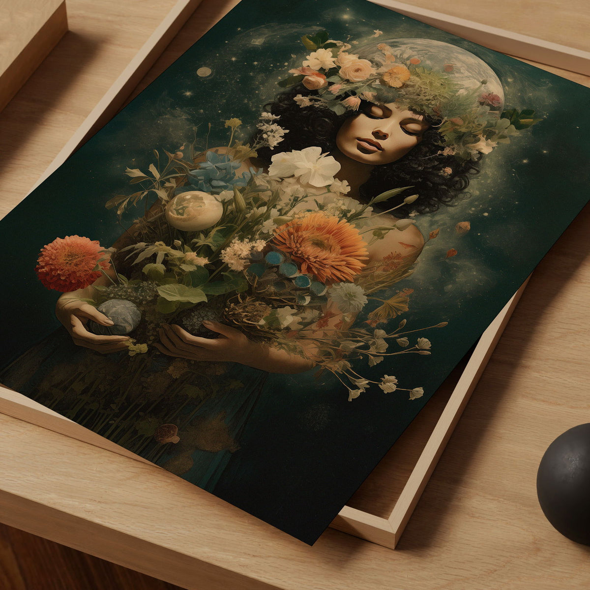 Flower Head Art Print, Futuristic Woman Wall Art - Fine Art Paper / 8x10 / No Frame