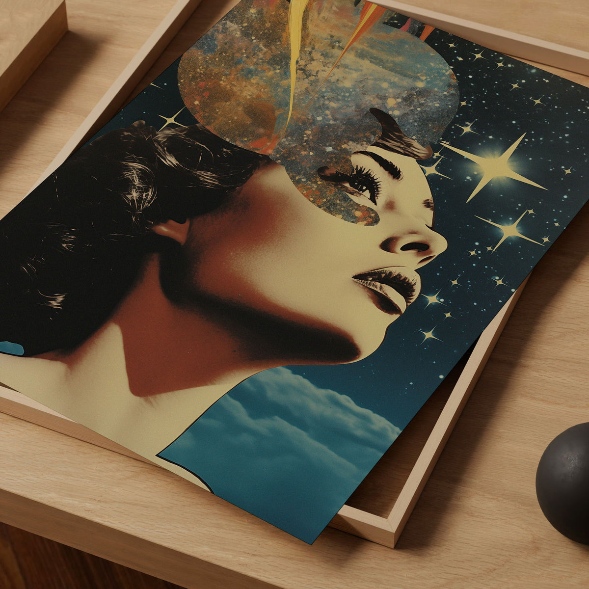 Flower Head Woman Art Print, Futuristic Woman Surrealism