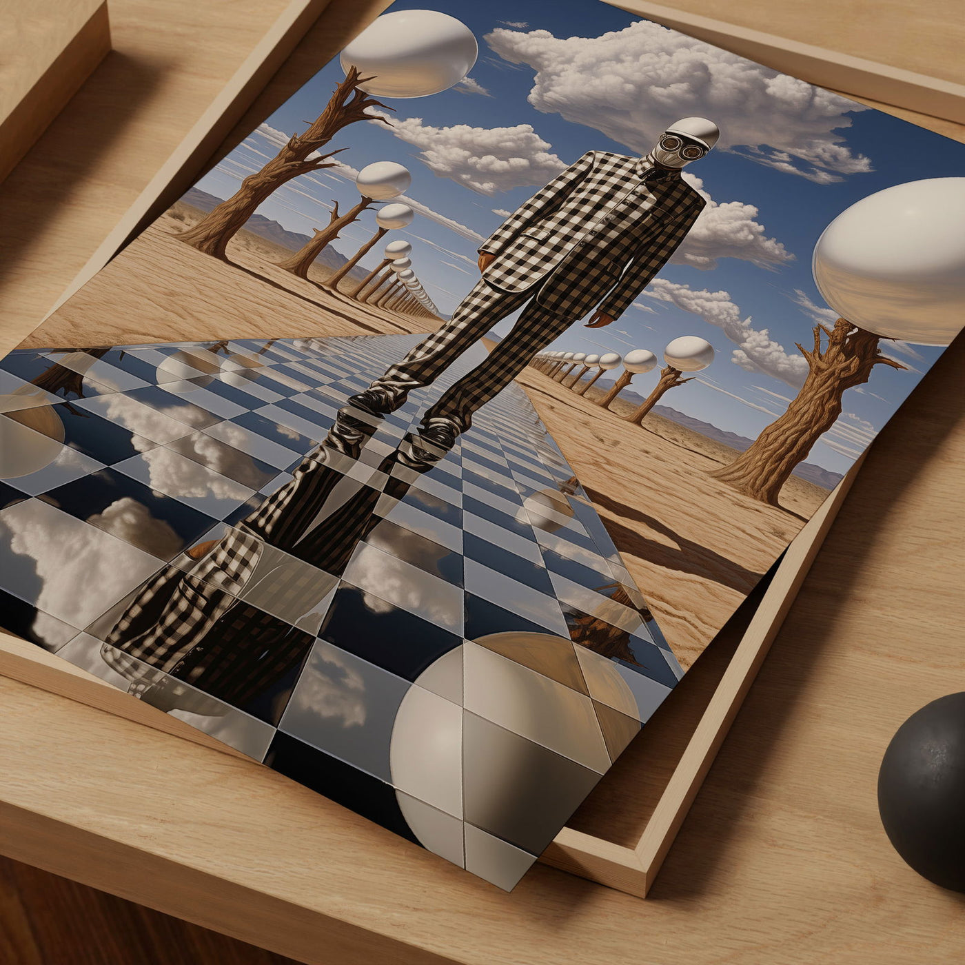 Surreal Abstract Wall Art Print, Steampunk Man In Black White Check Suit - Fine Art Paper / 8x10 / No Frame